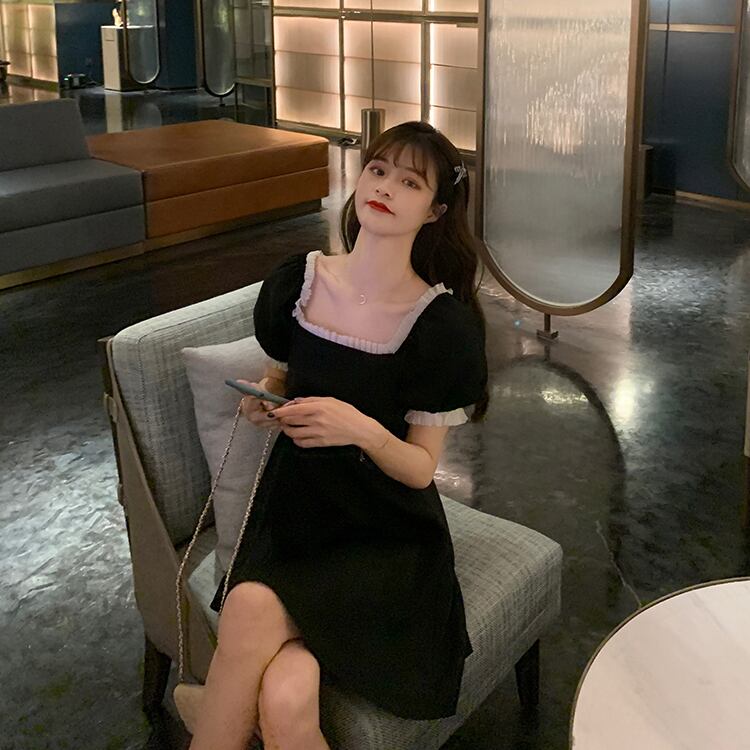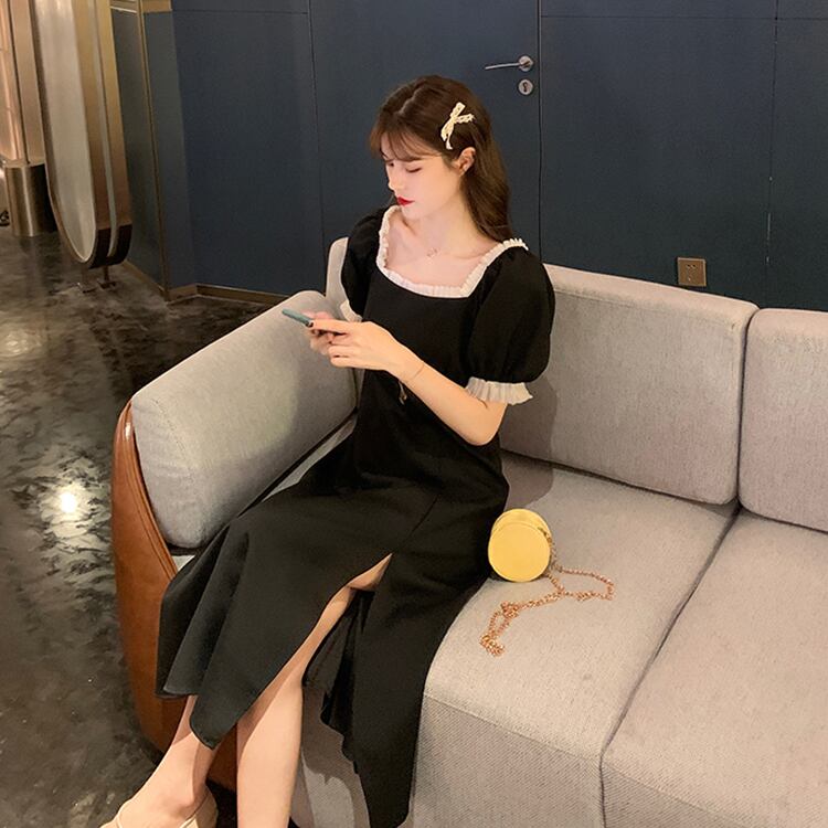 【韓国通販 dgo】レース ステッチ 半袖 ワンピース ドレス 女性 夏 2020 フレンチ スクエアカラー ショート ロング ハイセンスなワンピースが欲しい?(A1711)