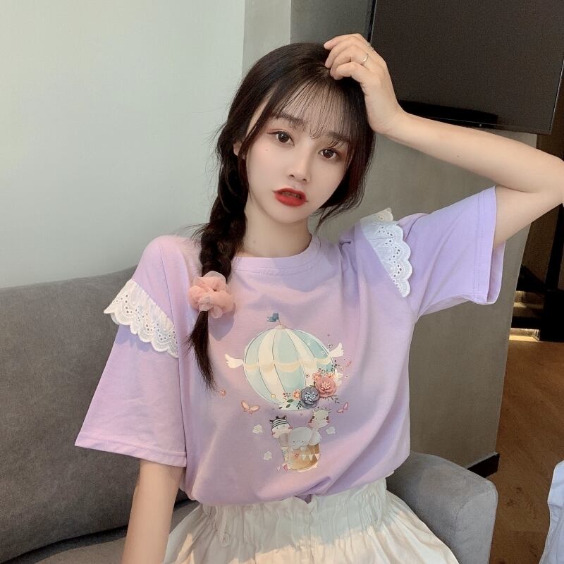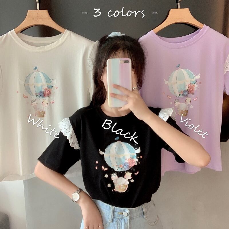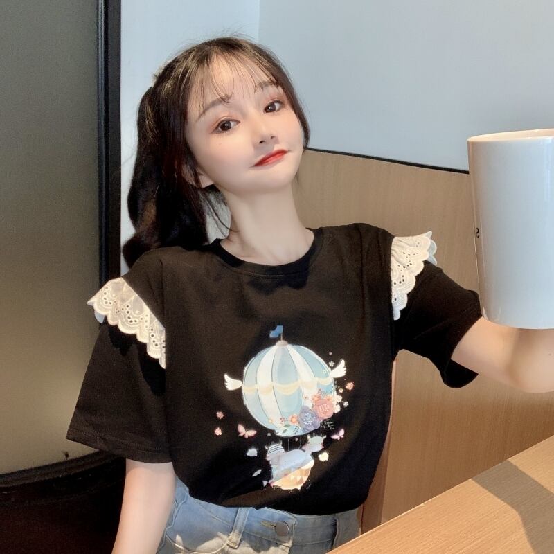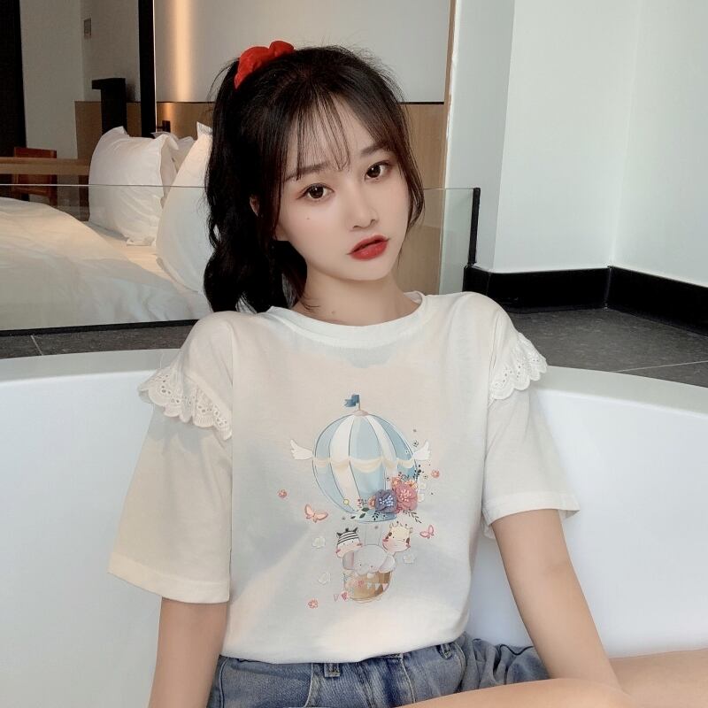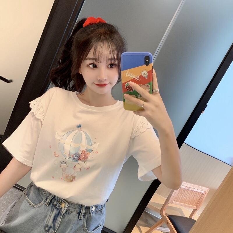 【韓国通販 dgo】レース ステッチ 半袖 Tシャツ 女性 トップス 2020年 夏 さらっと一枚で。涼しいTシャツ(A1681)