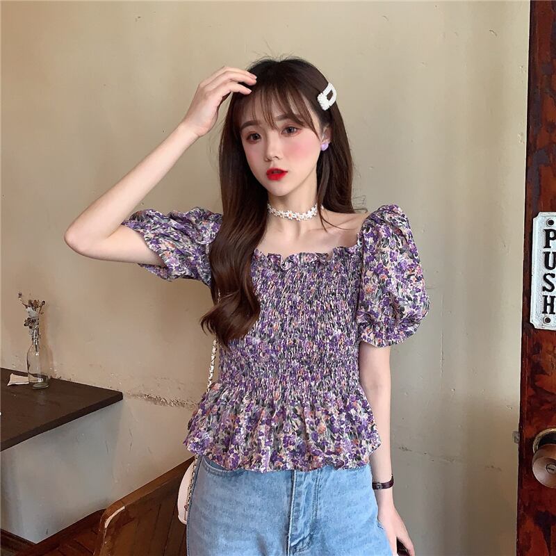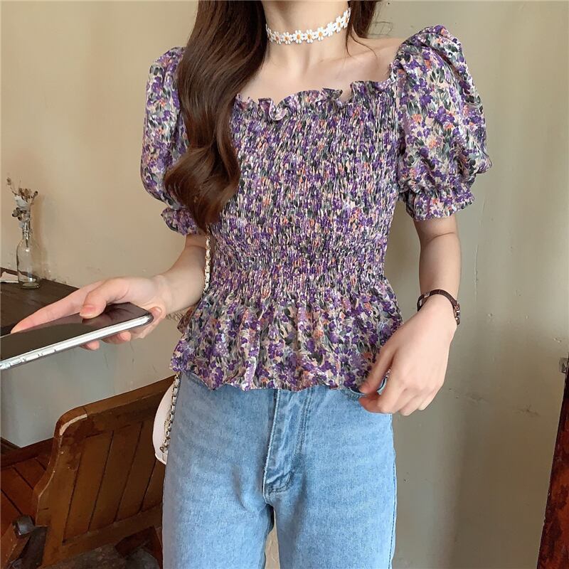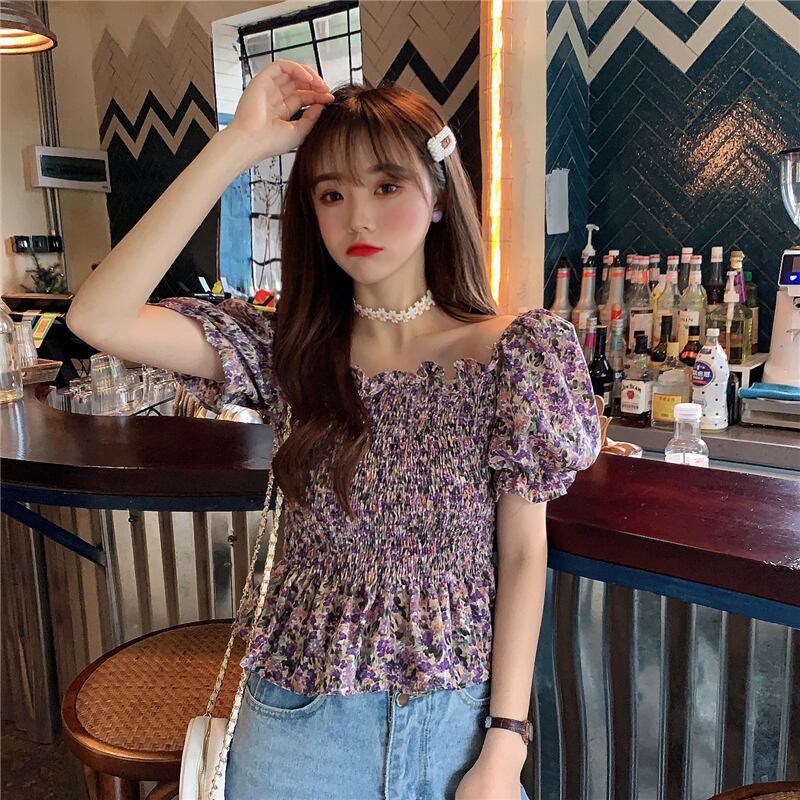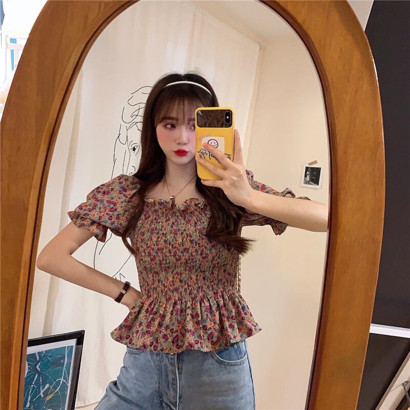 【韓国通販 dgo】フローラル シャツ 女性 ショートトップス 2020年 夏 レトロ 愛らしいトップス(A1679)