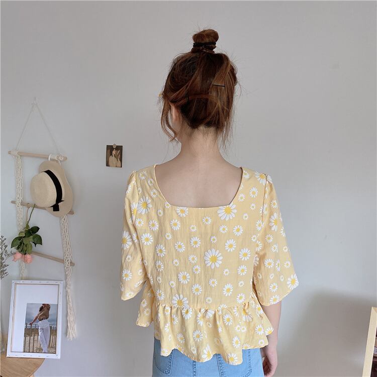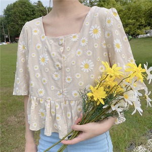 【韓国通販 dgo】2020年 夏 フレンチ スクエアカラー フローラルシャツ 女性 愛らしいトップス(A1677)