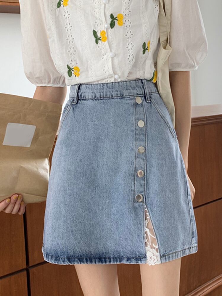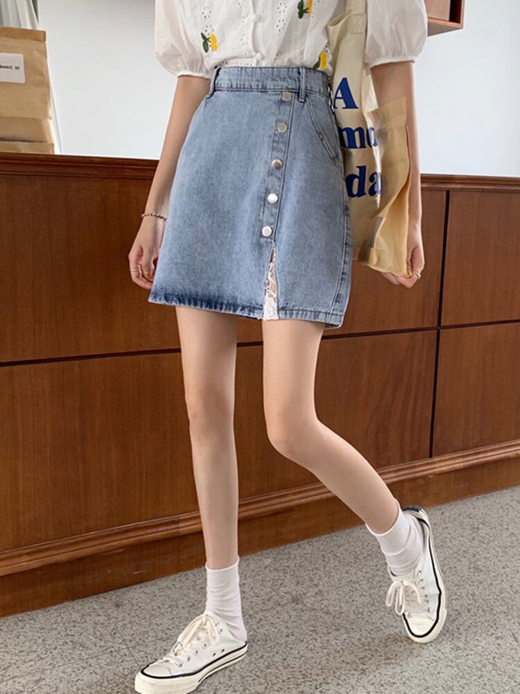 【韓国通販 dgo】ハイウエスト スカート 女性 夏 2020 ヒップスカート デニム 毎日着たいスカート(A1652)