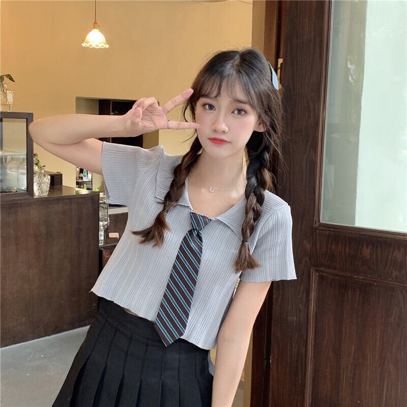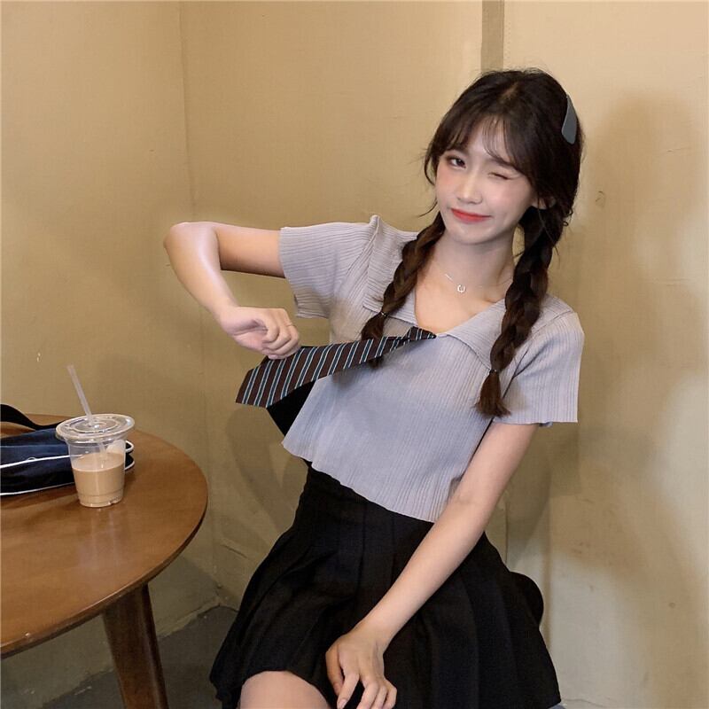 【韓国通販 dgo】ボトムス POLO襟シャツ ショートシルク セーター 夏 2020 スリム 半袖 愛らしいシャツ(A1650)