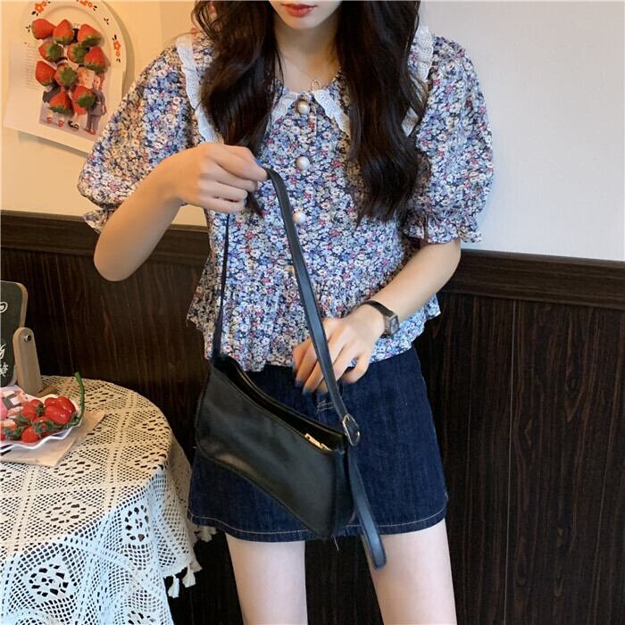 【韓国通販 dgo】フローラル シフォンシャツ レトロ 女性 夏 2020 半袖 一着はマスト♪夏のシャツ(A1628)