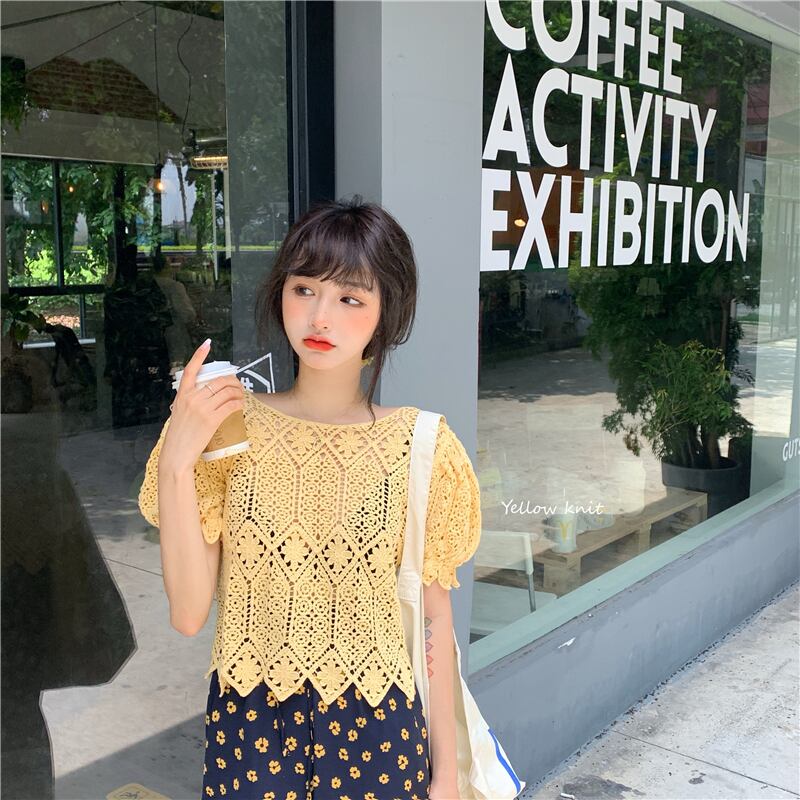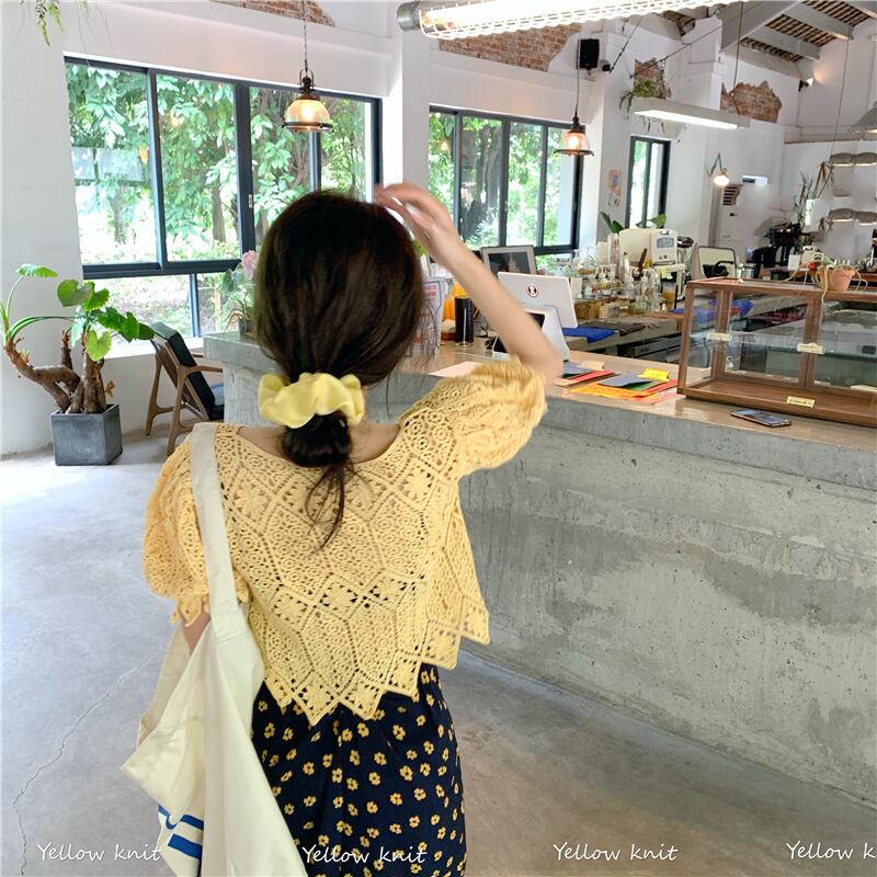 【韓国通販 dgo】サマー セーター イエロー シャツ 女性 夏 2020 半袖 センス感じるこだわりサマーニット(A1608)