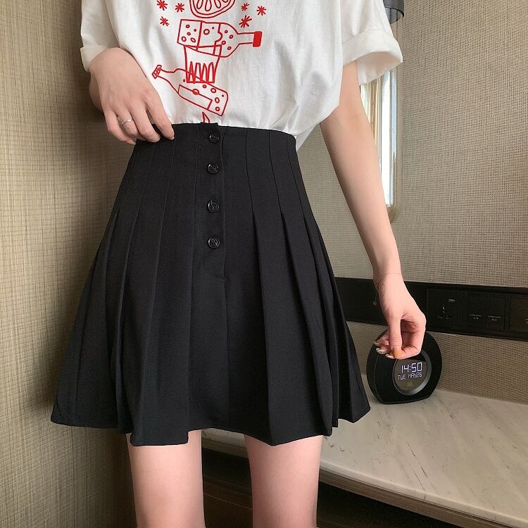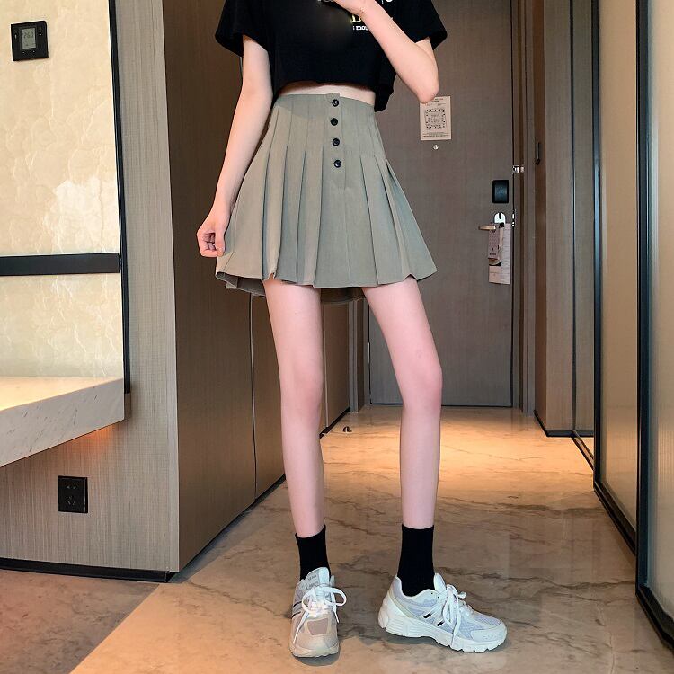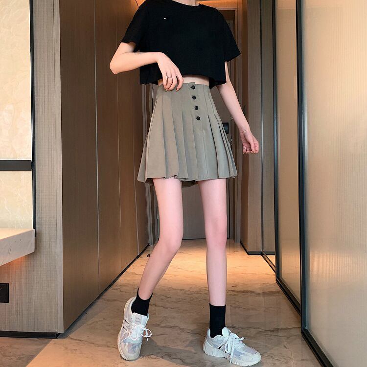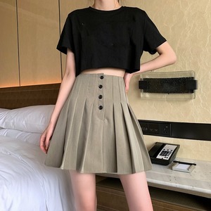 【韓国通販 dgo】プリーツ ショート スカート 夏 2020 ハイウエスト 女性 Aライン カーキ ブラック 個性輝くこだわりスカート(A1578)
