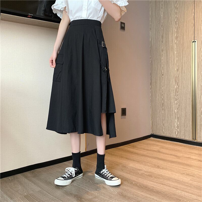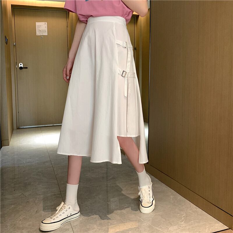 【韓国通販 dgo】2020年 夏新 作 ハイウエスト イレギュラー スプリット ミドル丈 スカート 女性 個性輝くこだわりスカート(A1554)