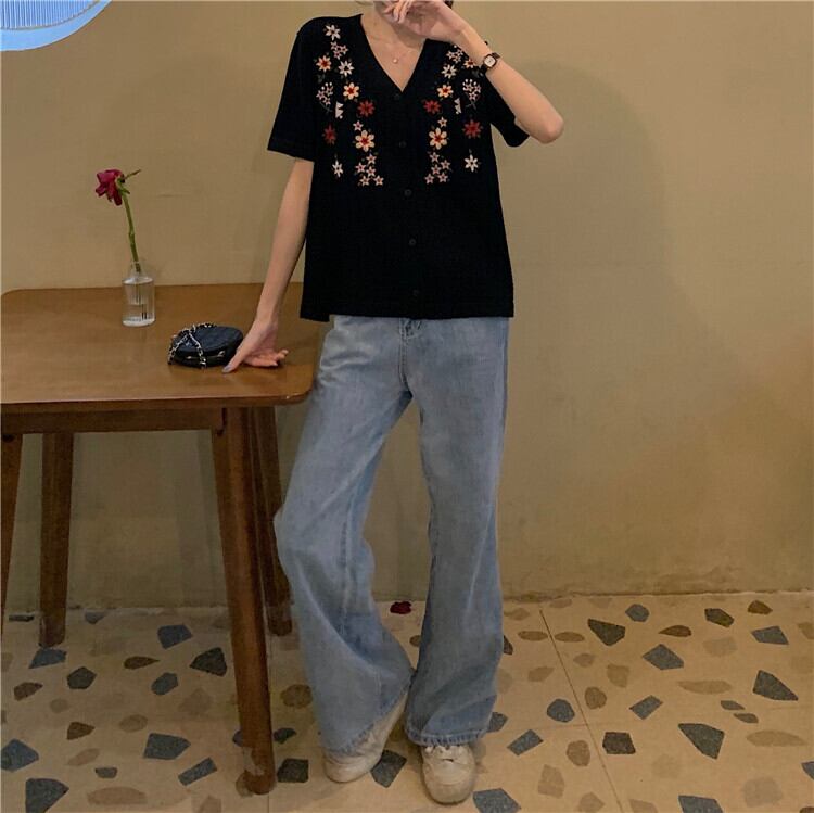 【韓国通販 dgo】シングルブレスト 半袖 サマー セーター 女性 カーディガン トップス 2020年 夏 ハイセンスなカーディガンが欲しい♪(A1534)