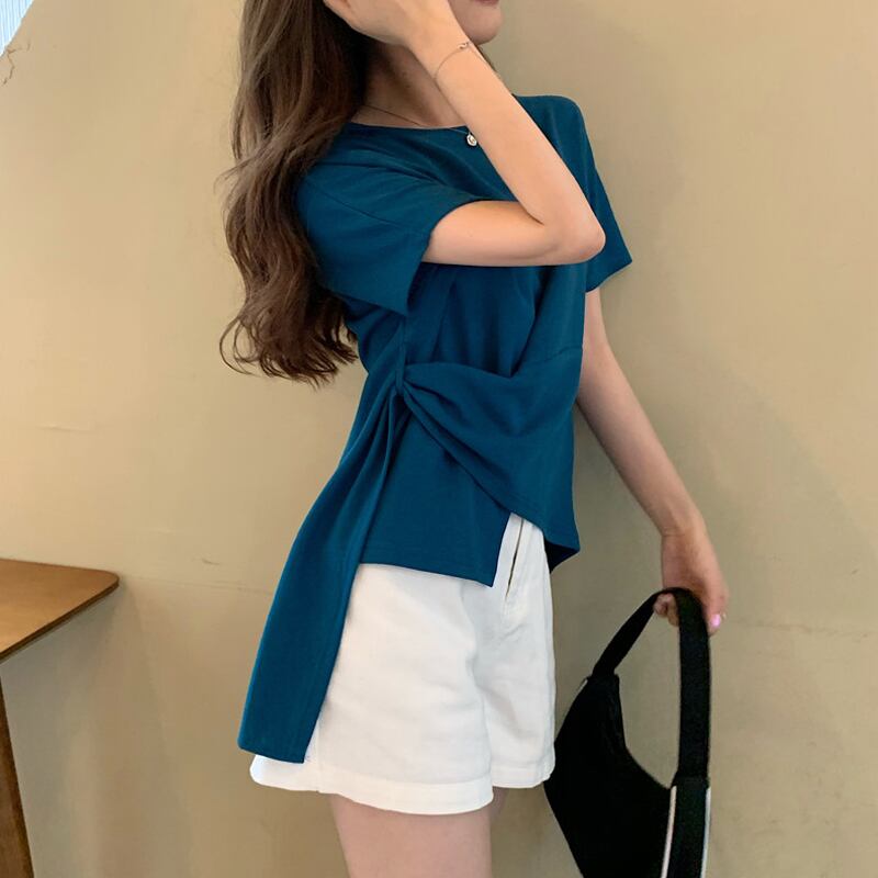 【韓国通販 dgo】イレギュラー 半袖 Tシャツ 女性 2020年 夏 無地 さらっと一枚で。涼しいトップス(A1502)