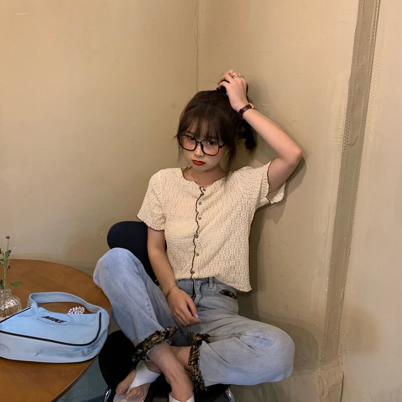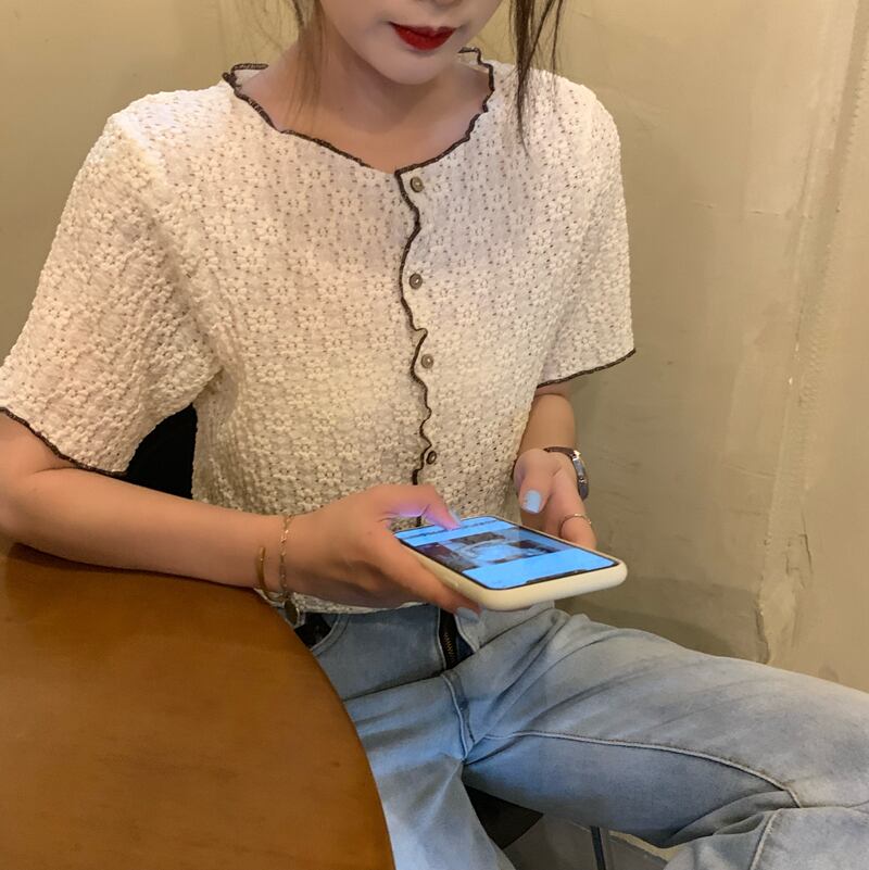 【韓国通販 dgo】半袖 ブラウス ラウンドネック 女性 トップ 2020年 夏 Tシャツ 特別な日のトップス(A1476)