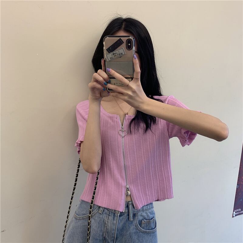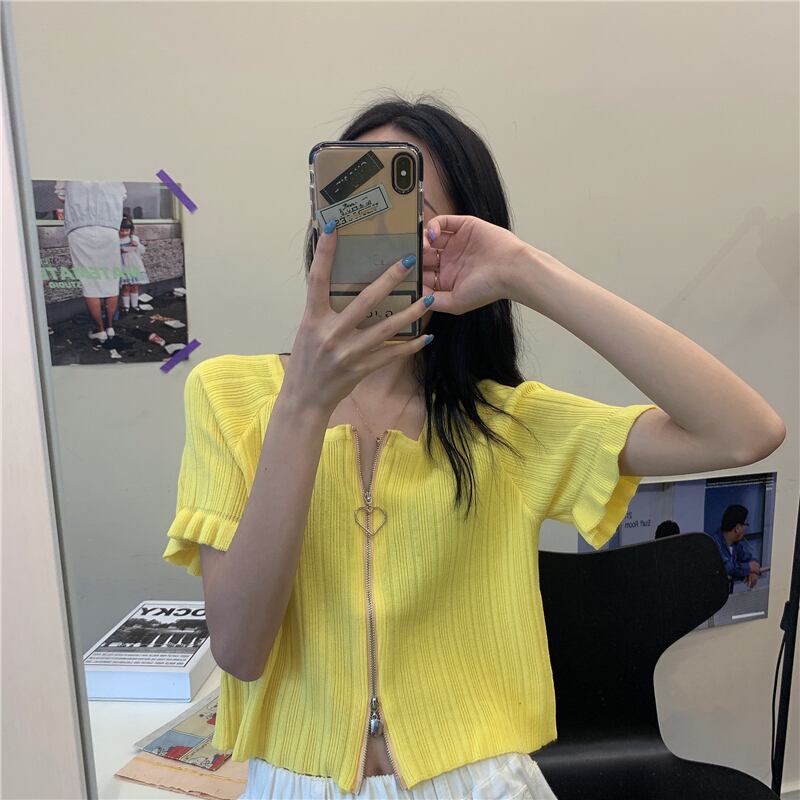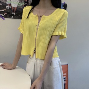 【韓国通販 dgo】ローラウンドネック ショートカーディガン トップス 2020年 夏 セーター 女性 一着あると便利なサマーニット(A1429)