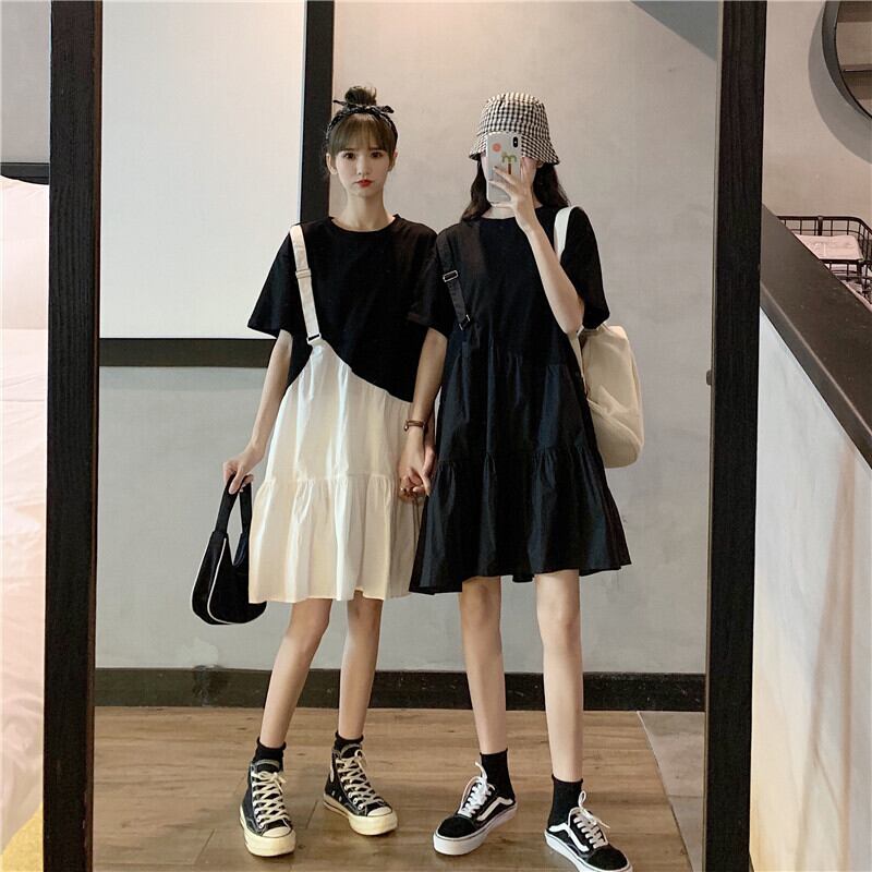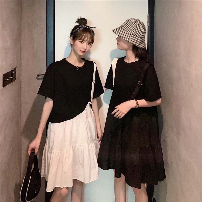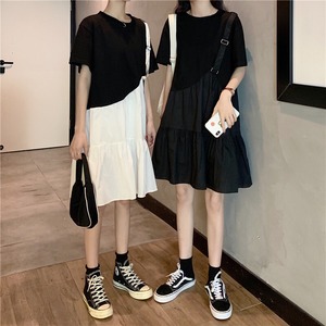 【韓国通販 dgo】フェイクツーピース デザイン ワンピースドレス 女性 夏 2020 ゆったりウエスト(A1379)
