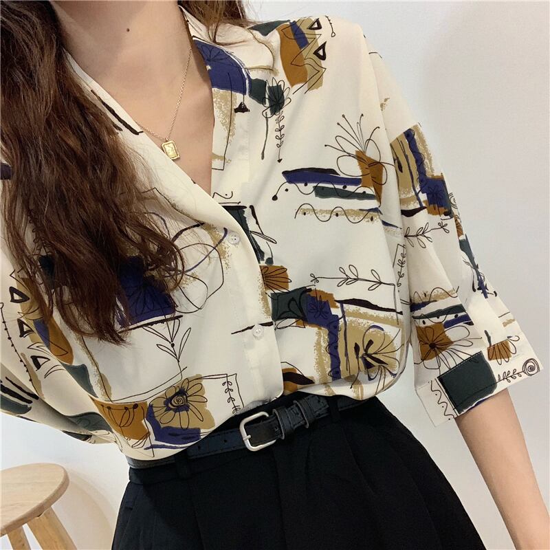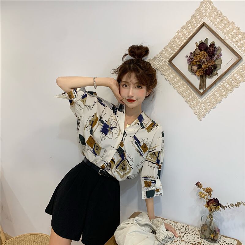 【韓国通販 dgo】Vネック ニッチデザイン 五分袖 シャツ 女性 2020年 夏が楽しくなるトップス(A1353)