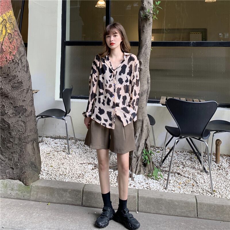 【韓国通販 dgo】シングルブレスト ヒョウ柄シャツ 2020年 夏 女性 長袖 ハイセンスなシャツが欲しい♪(A1319)