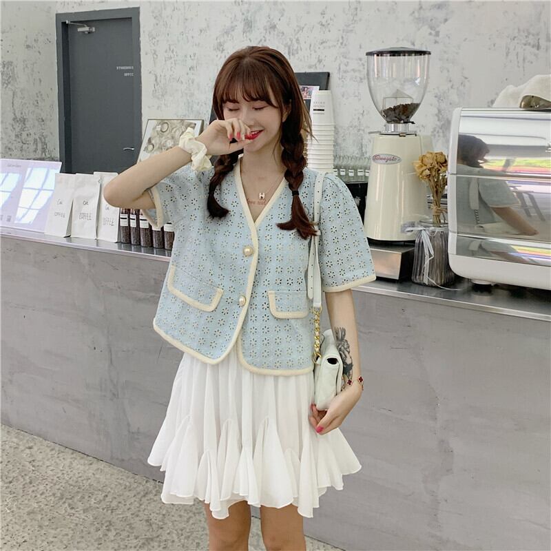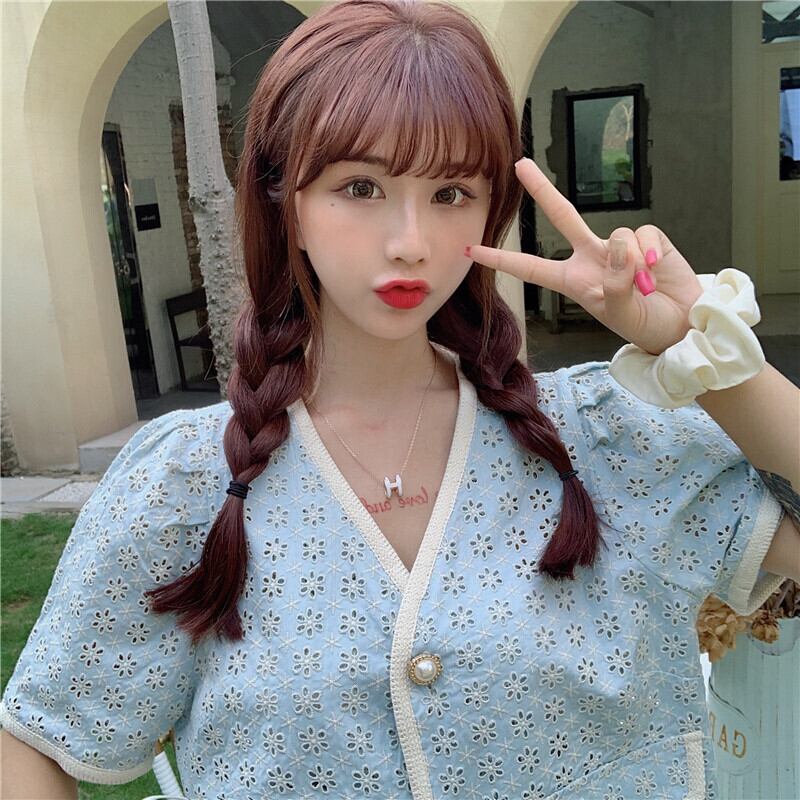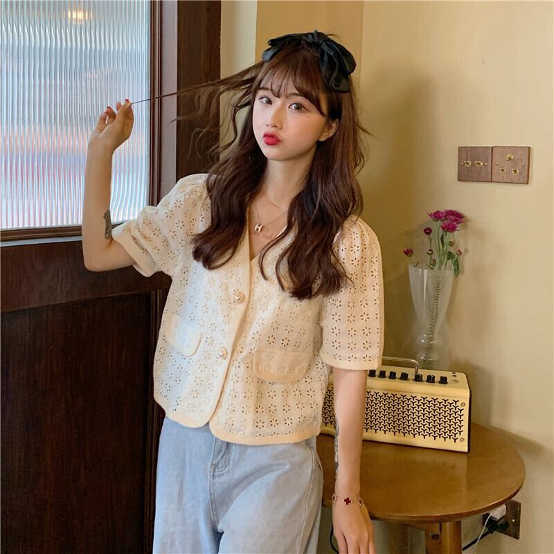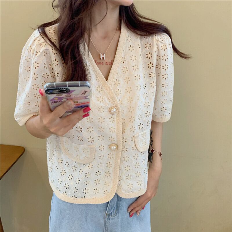 【韓国通販 dgo】Vネック ショート シャツ 夏 2020 半袖 女性 五分袖 ハイセンスなシャツが欲しい♪(A1317)