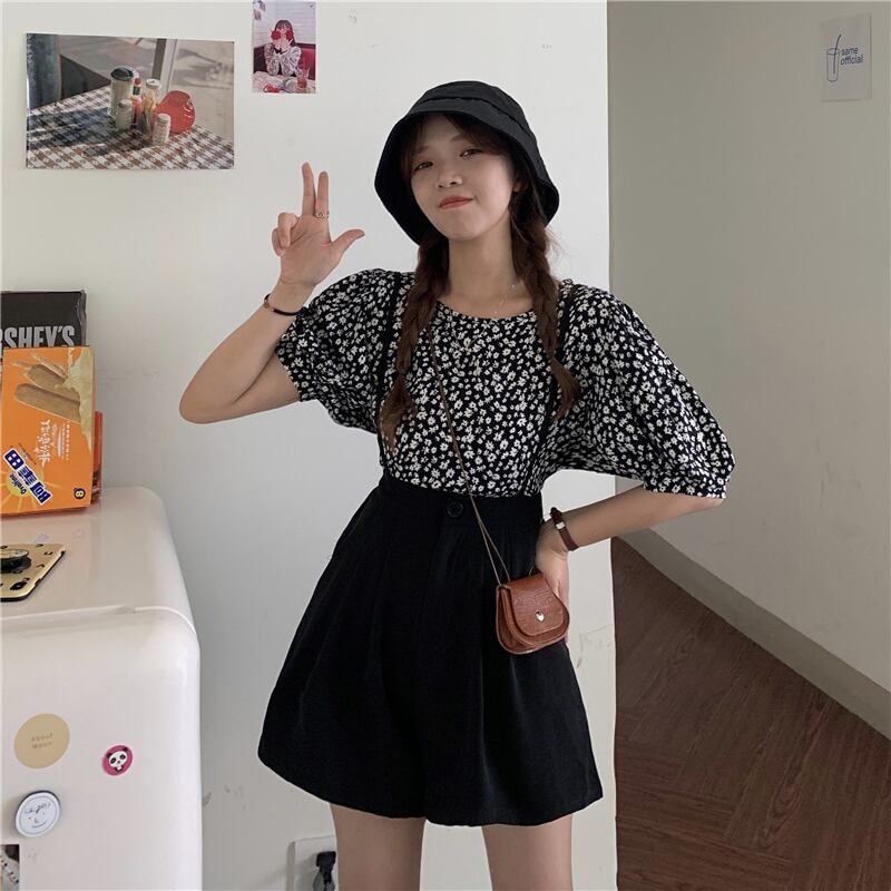 【韓国通販 dgo】ワイドレッグ ストラップパンツ+フローラルデザイン シャツ セットアップ 女性 夏 2020(A1299)