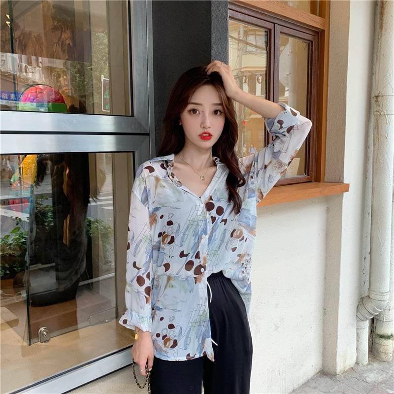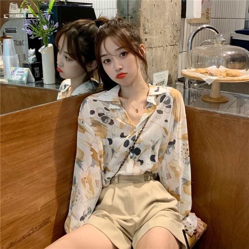 【韓国通販 dgo】フローラル シフォンシャツ カーディガン ベージュ ショートパンツ 日焼け止め 2020年 夏(A1265)