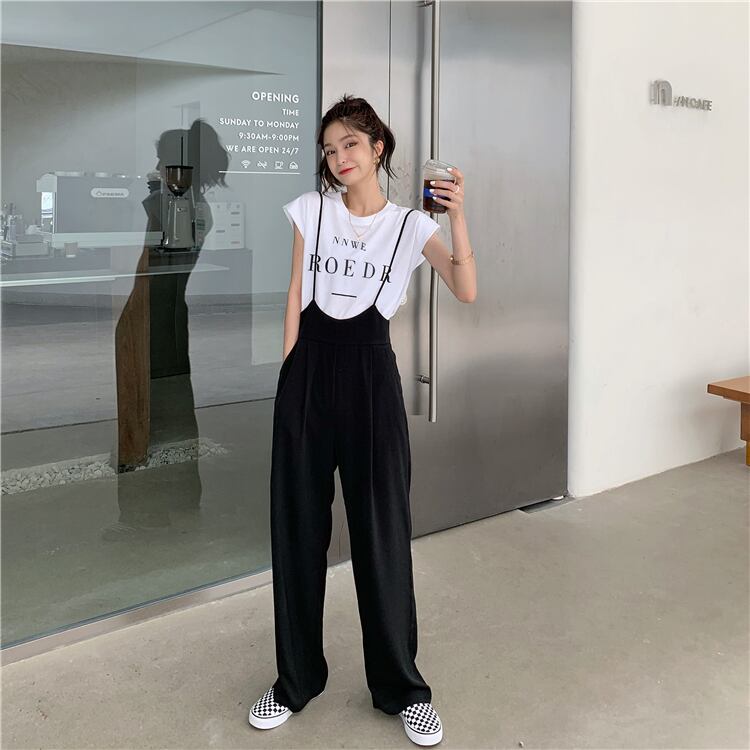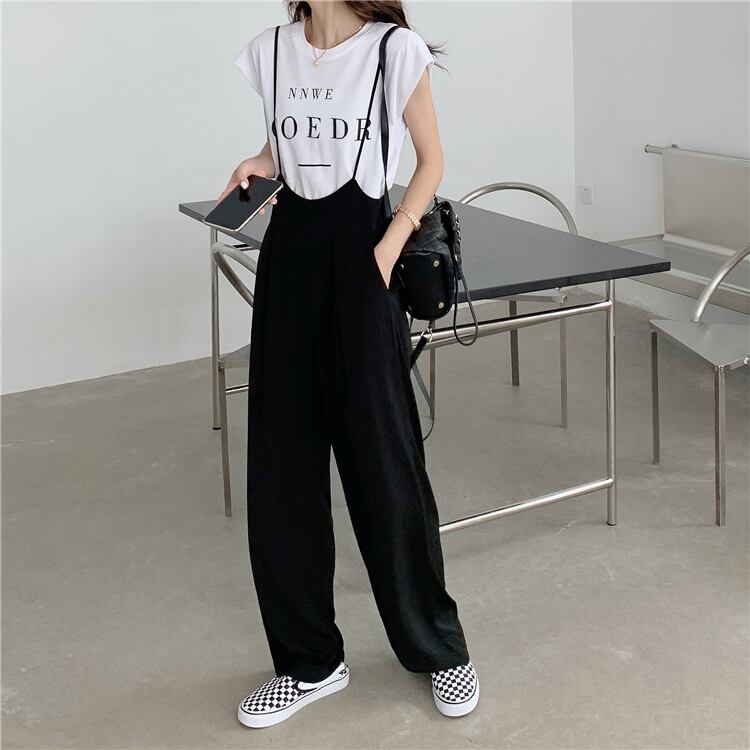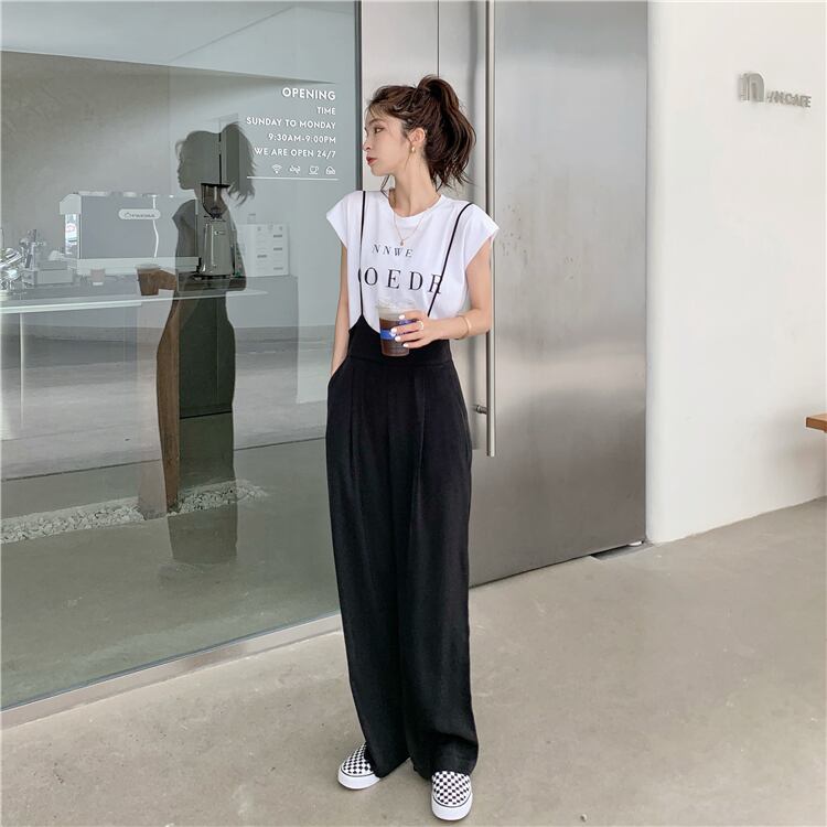 【韓国通販 dgo】ワイドレッグ カジュアルパンツ 女性 2020 夏 ショルダーストラップ(A1263)