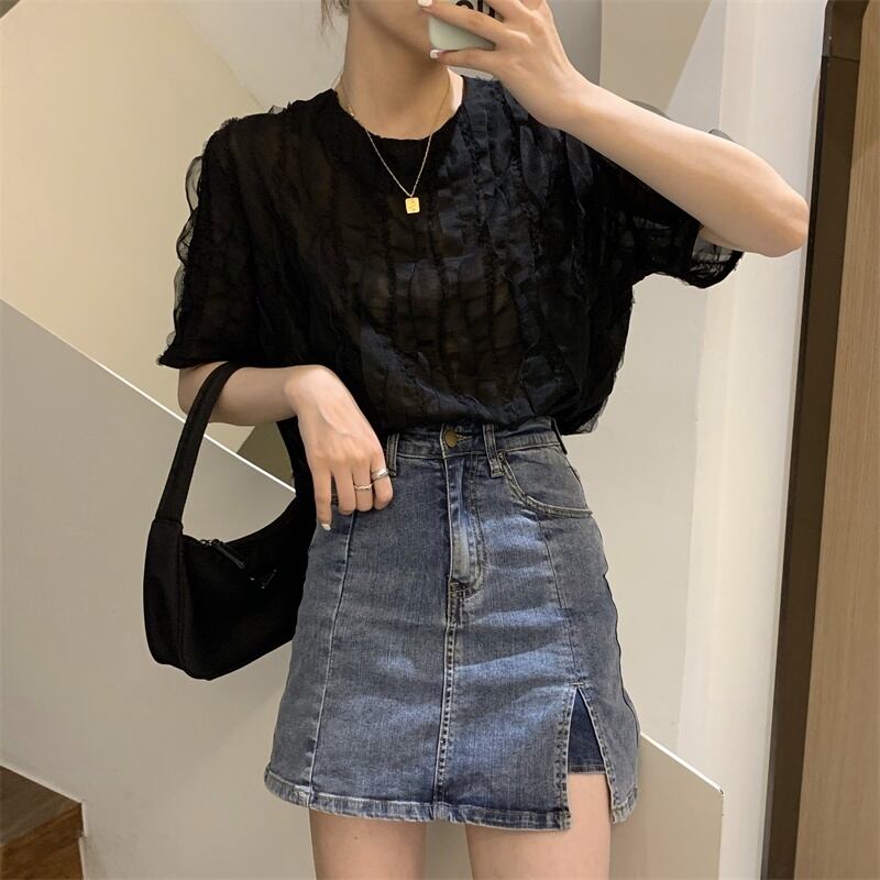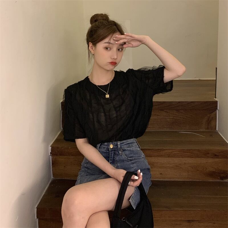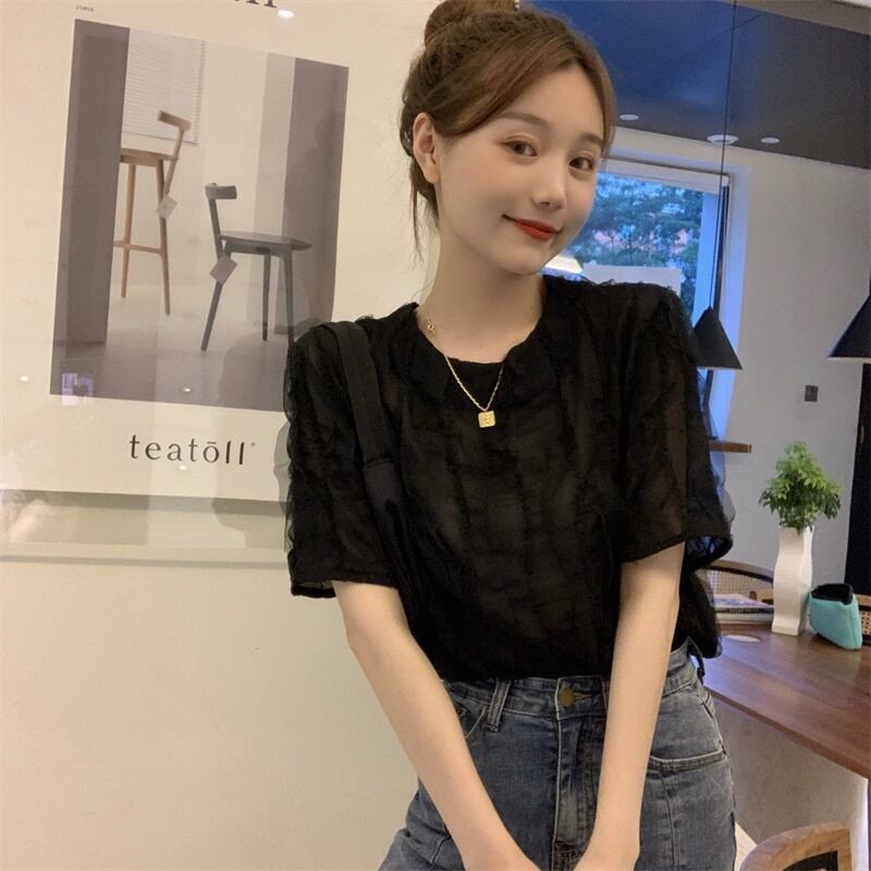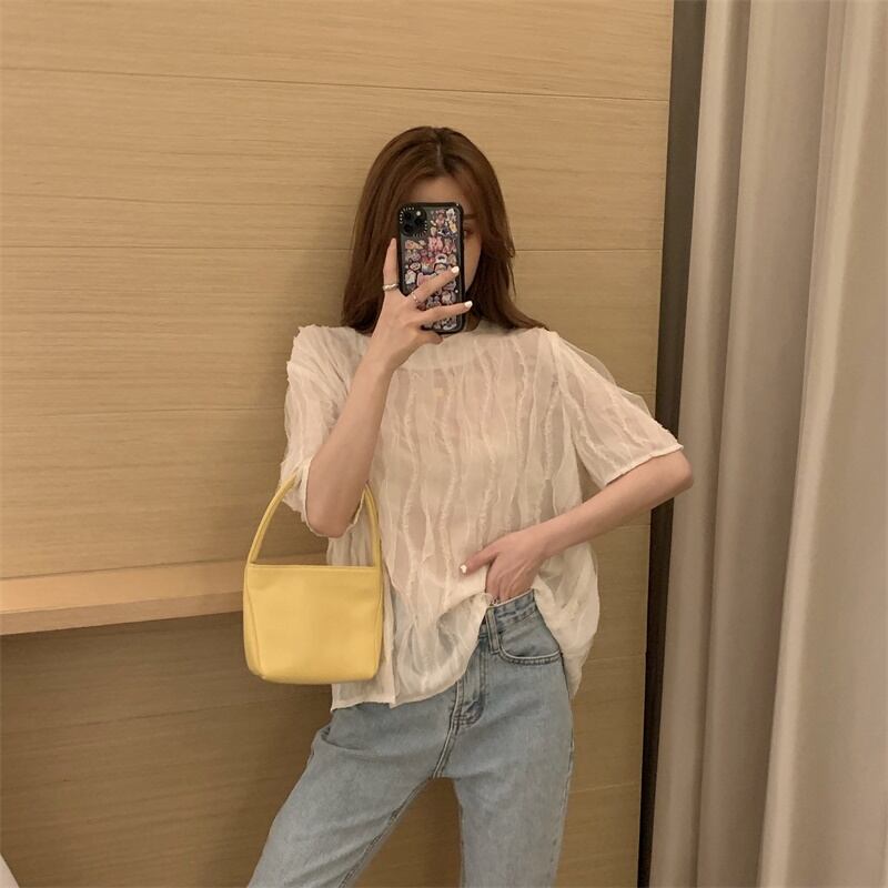 【韓国通販 dgo】ラウンドネック シフォンシャツ 2020年 夏 長袖 日焼け止め トップ 女性 個性輝くこだわりブラウス(A1239)