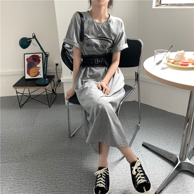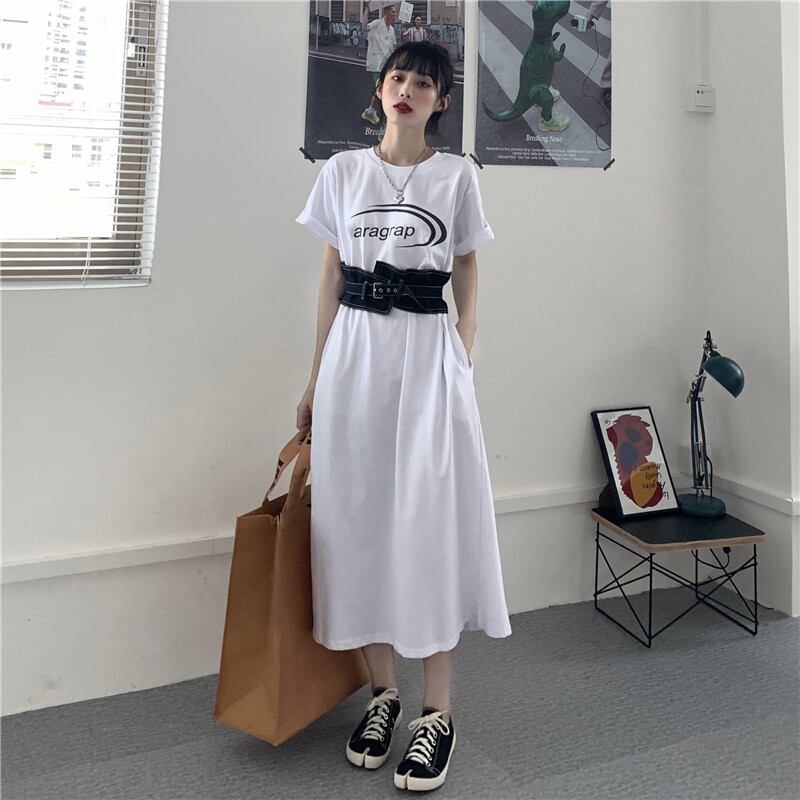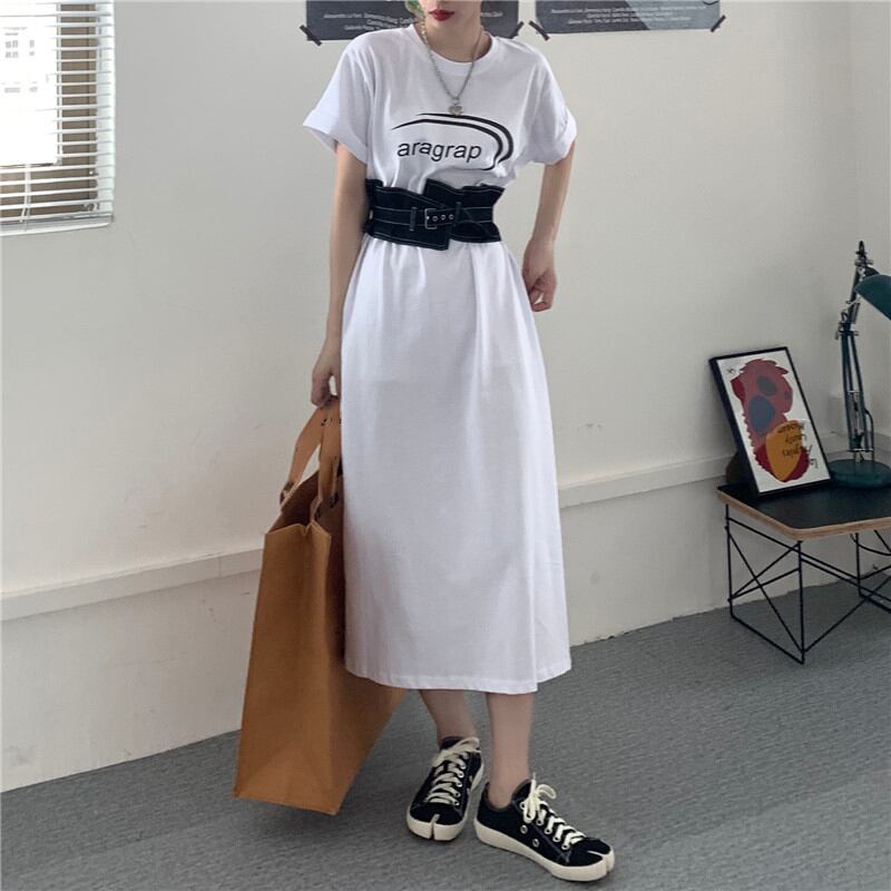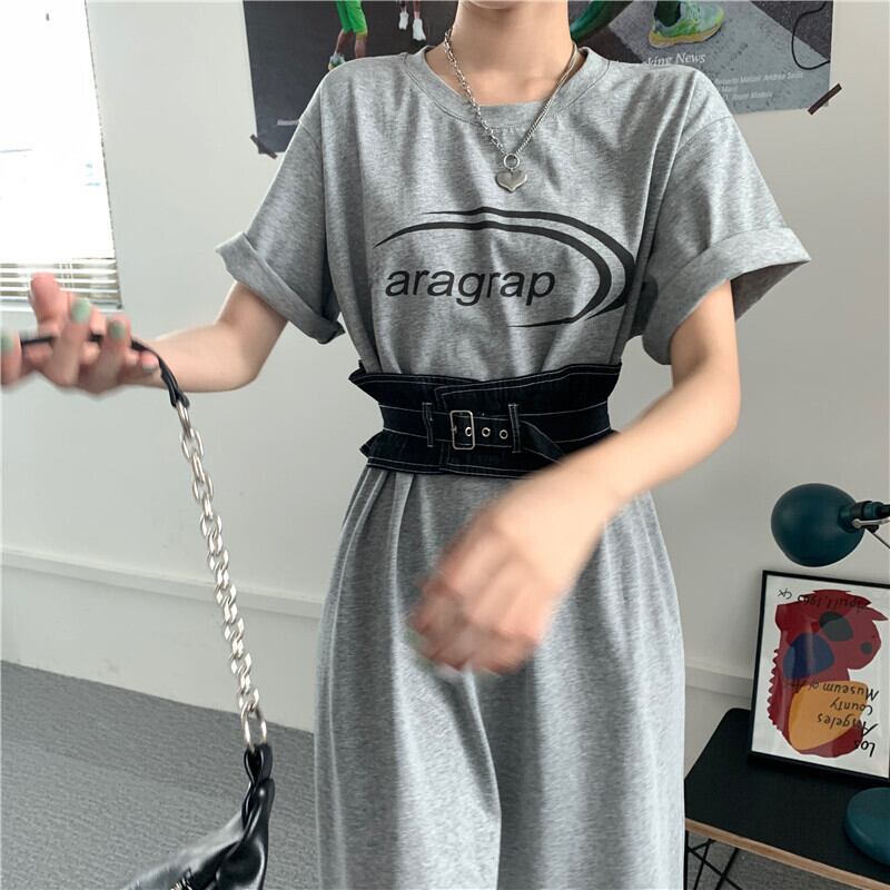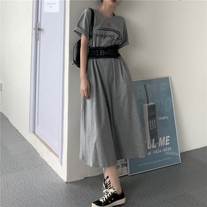 【韓国通販 dgo】ラウンドネック ミドル丈 ワンピース ドレス 女性 2020年 夏 デニムベルト付 好感度アップ!レディースの夏コーデ(A1227)