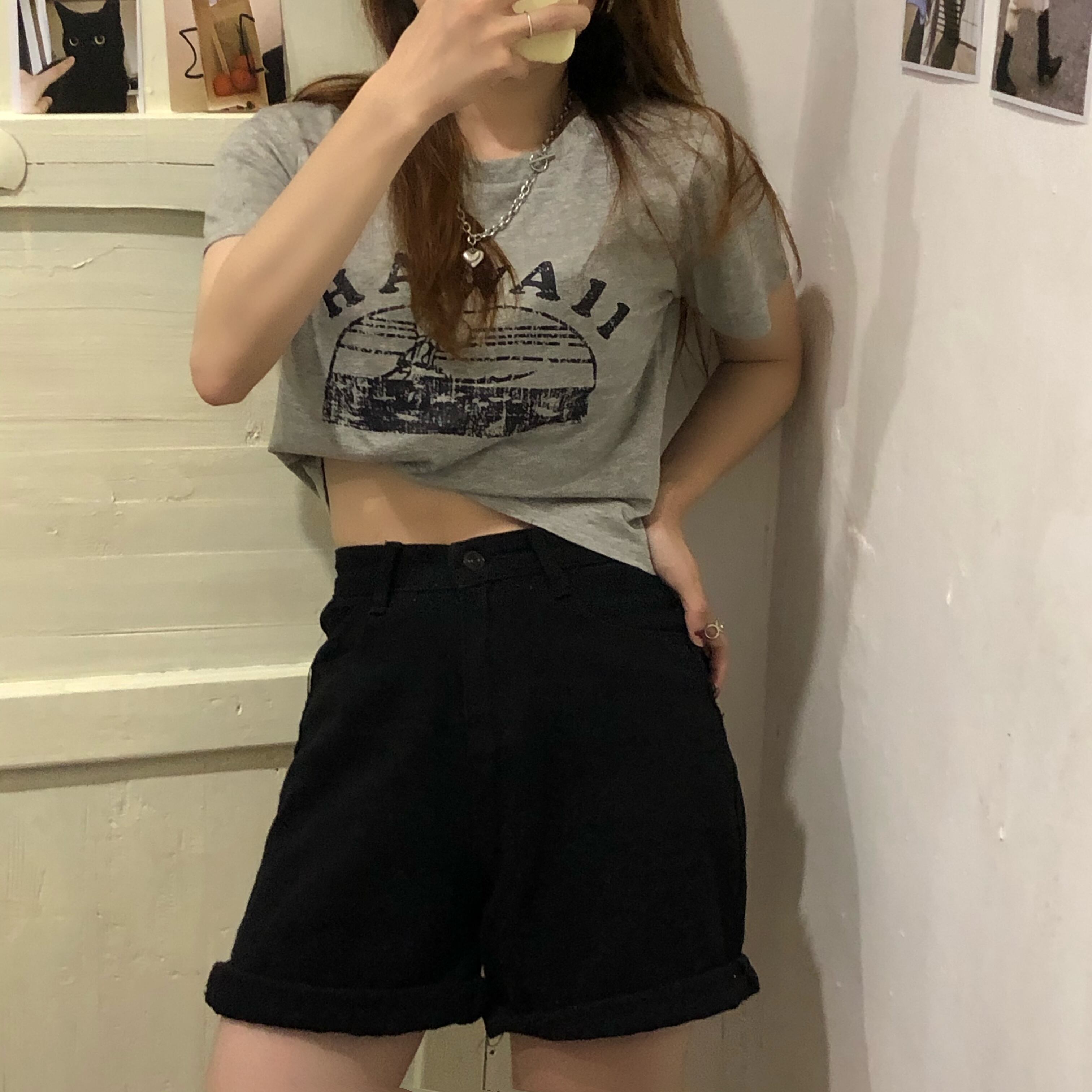 【韓国通販 dgo】ラウンドネック ショート トップ Tシャツ 夏 2020年 半袖 女性 ちょこっと先取り?トップス(A1225)