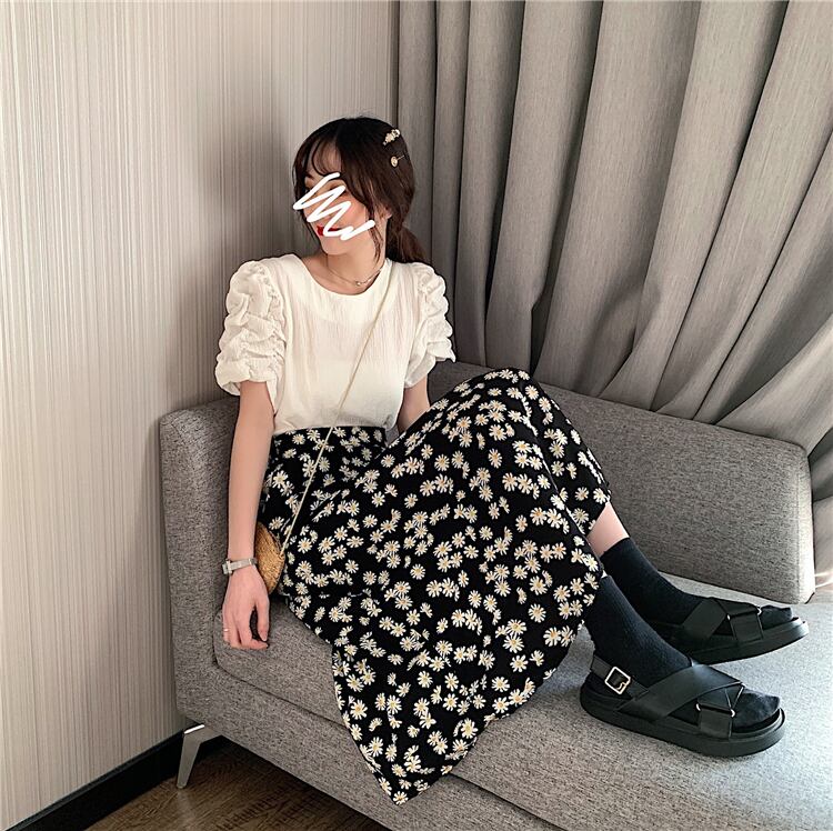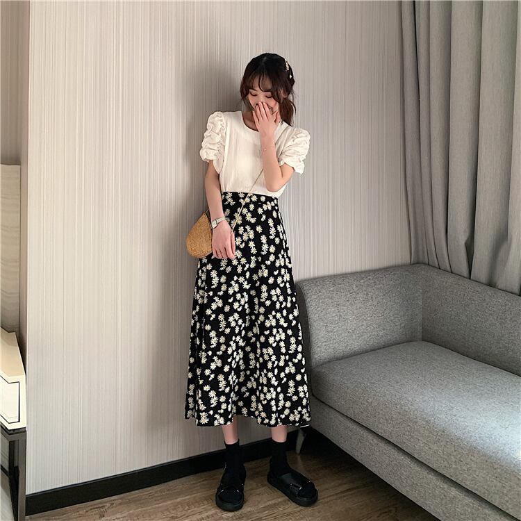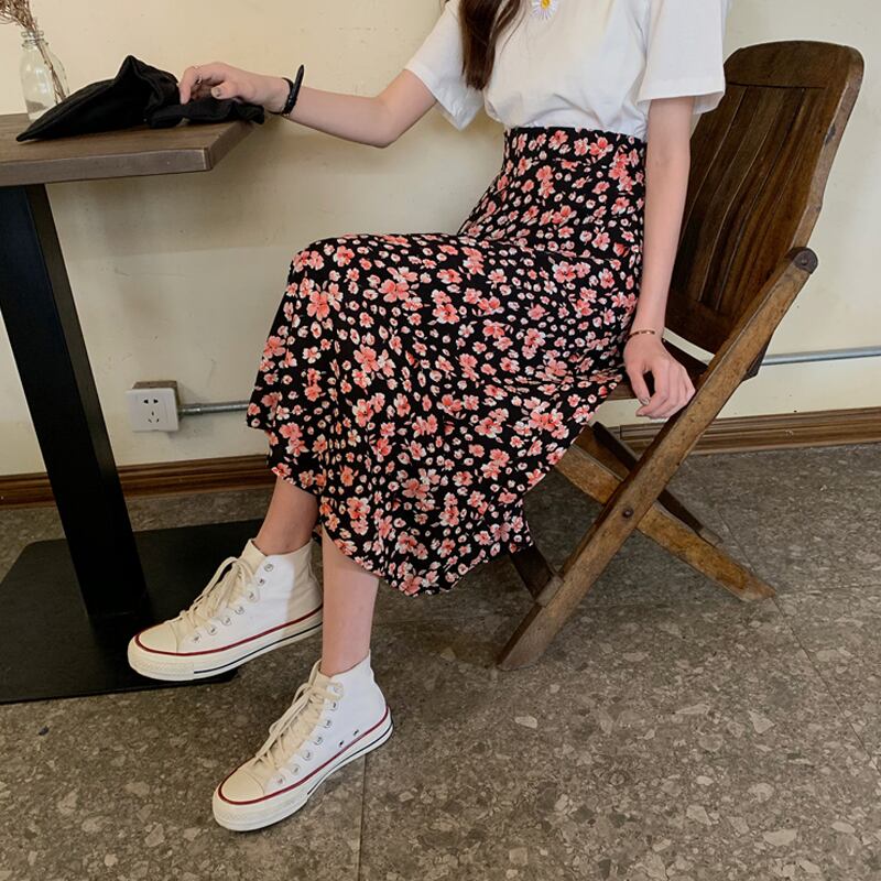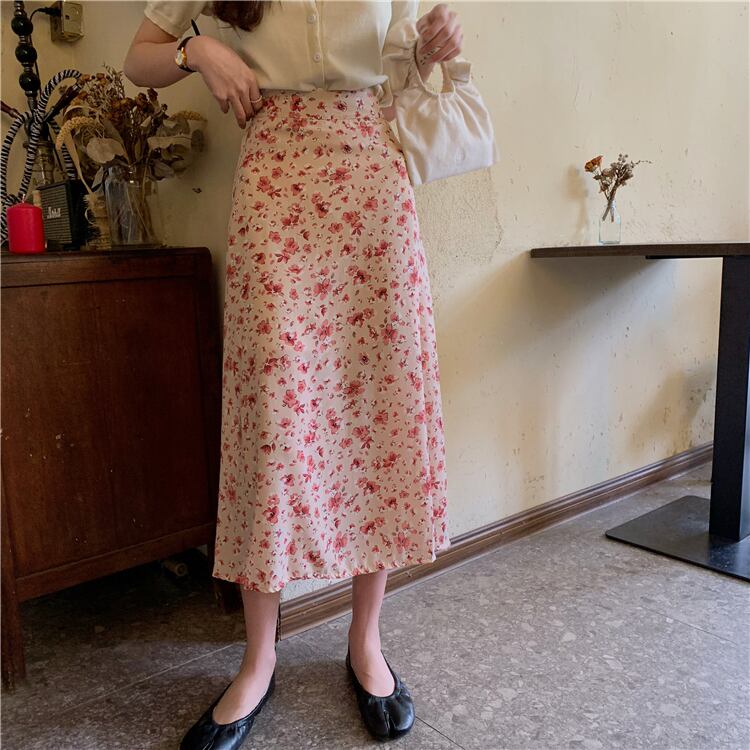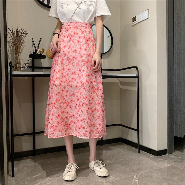【韓国通販 dgo】ミドル丈 フローラルスカート 女性 ハイウエスト Aライン 2020年 夏 着回し力抜群なスカート(A1223)