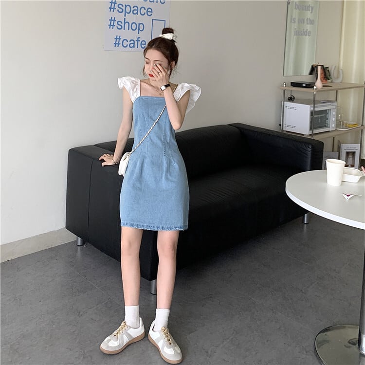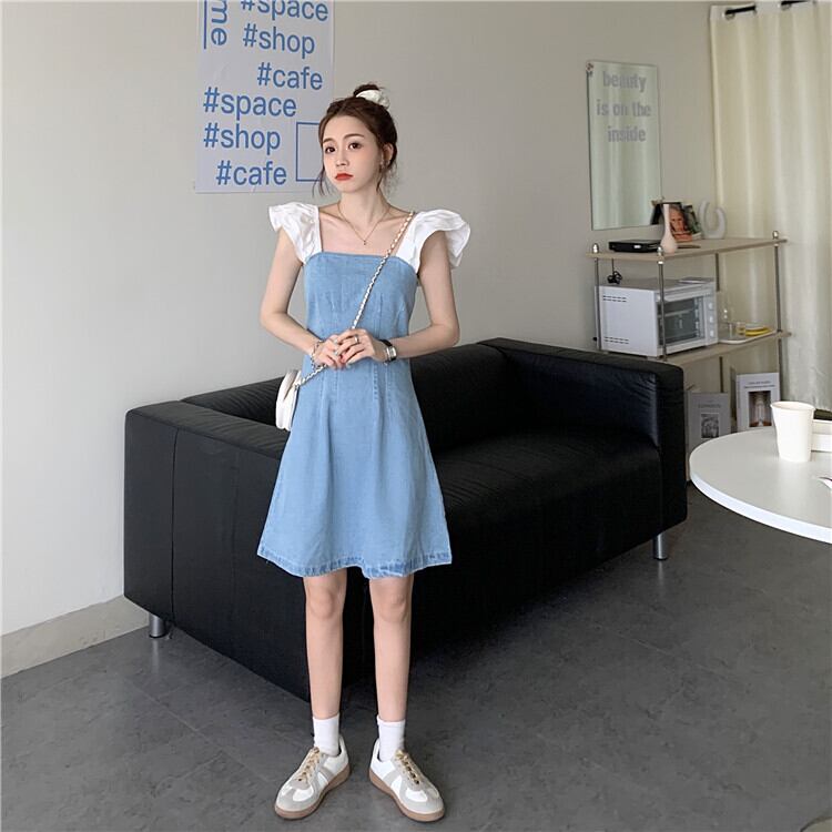 【韓国通販 dgo】ノースリーブ ステッチ ワンピース ドレス 女性 Aライン デニムスカート 好感度アップ!レディースの夏コーデ