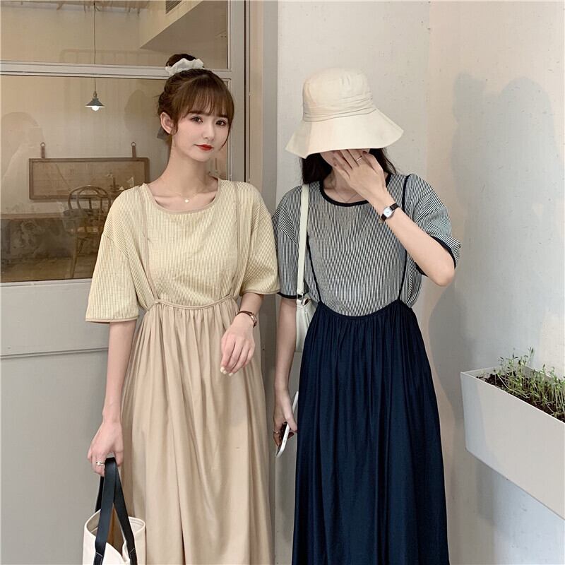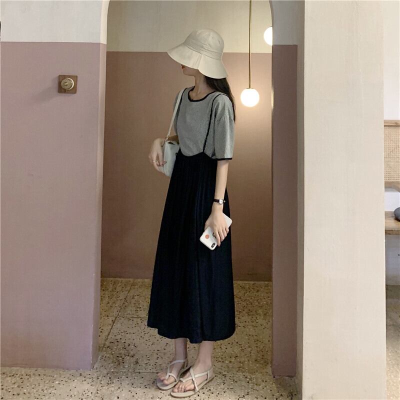 【韓国通販 dgo】サスペンダーロングスカート 女性 夏 2020 アイボリー ブラック(A1911)