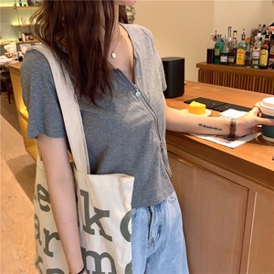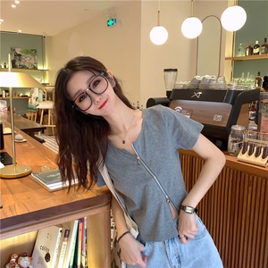 【韓国通販 dgo】フレンチ ラウンドネック ショートトップ 夏 2020年 半袖 シャツ 女性 気分高まる♪夏のトップス(A1897)