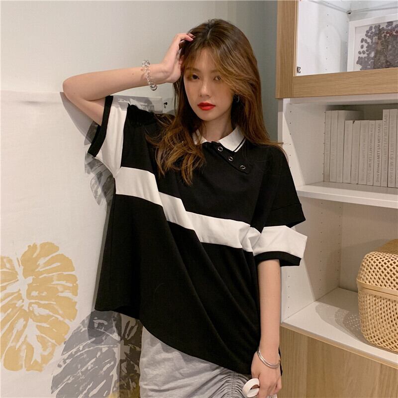 【韓国通販 dgo】半袖 POLO襟 シャツ 女性 2020年 夏 ブラック ニッチスリーブデザイン(A1883)
