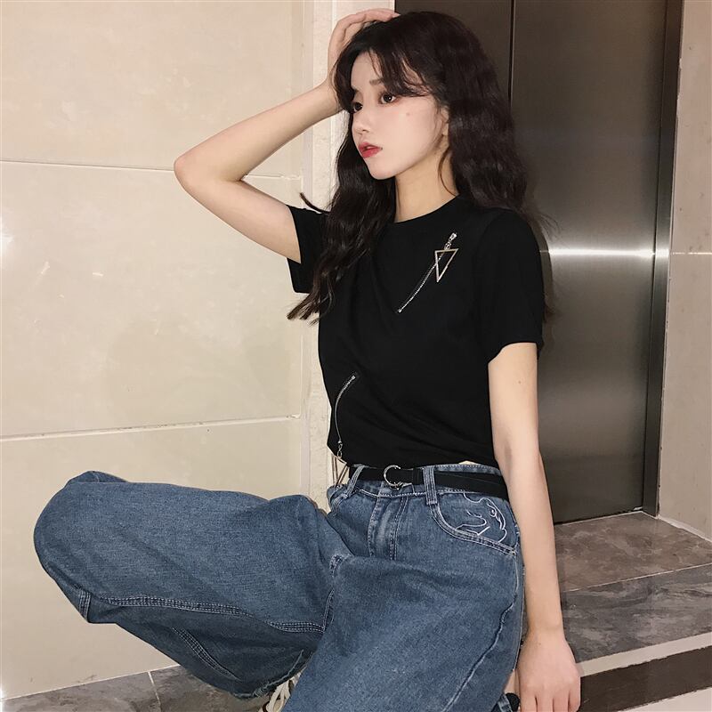 【韓国通販 dgo】ラウンドネック 半袖 Tシャツ 女性 トップ 2020年 夏 シンプルデザイン 自分らしく決まるシャツ(A1845)