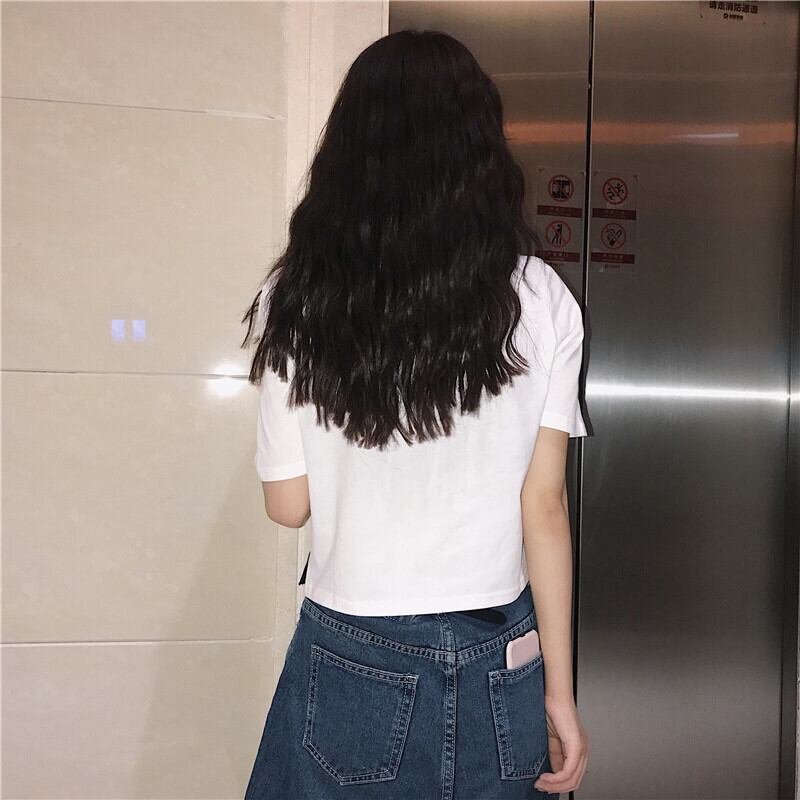 【韓国通販 dgo】ラウンドネック ハイウエスト 半袖 Tシャツ 女性 フェイク2ピース トップス 2020年 夏 自分らしく決まるシャツ(A1841)