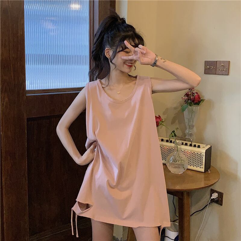 【韓国通販 dgo】ラウンドネック ミディアム丈 ノースリーブ Tシャツ 女性 トップス 2020年 夏(A1833)