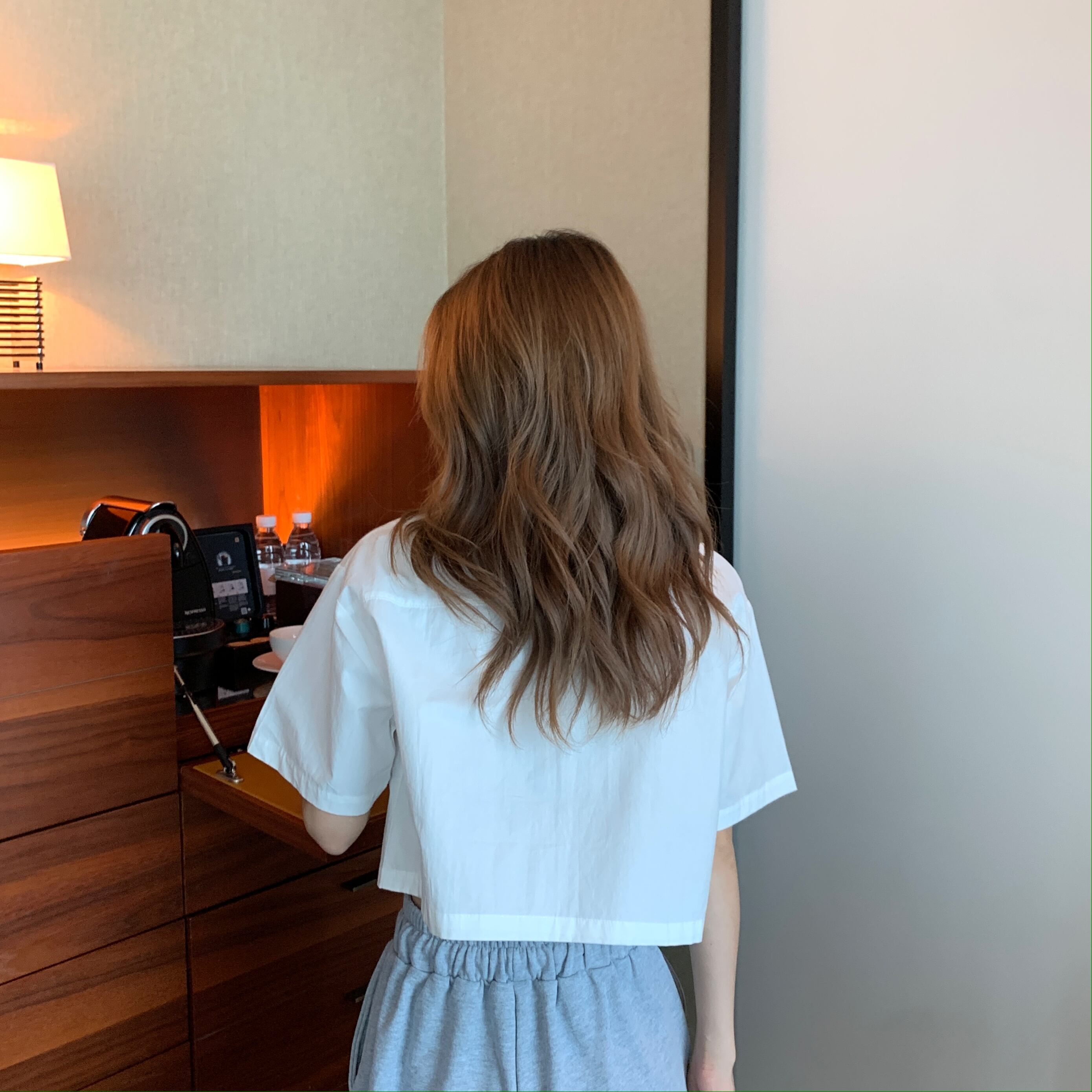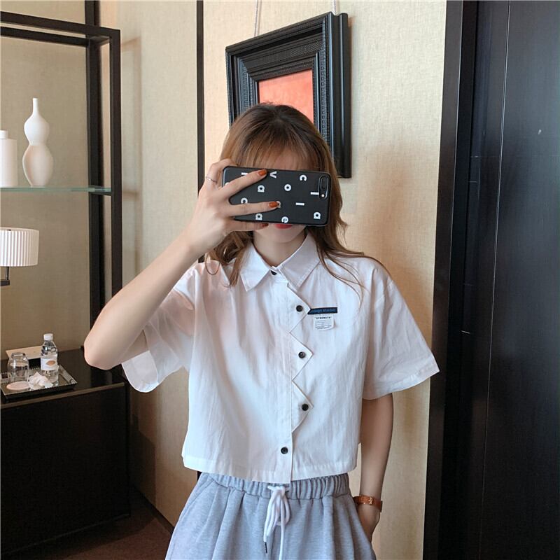 【韓国通販 dgo】POLO襟 半袖 ホワイト ショートトップ シャツ 女性 ガーリースタイル 2020年 夏 自分らしく決まるシャツ(A1809)