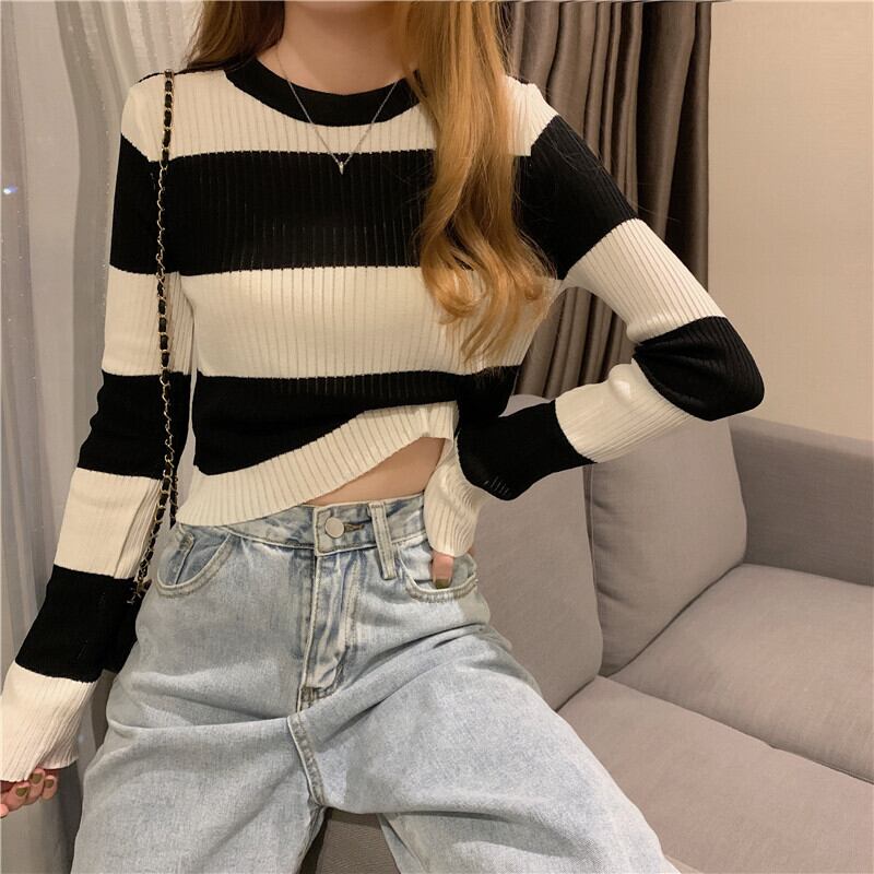 【韓国通販 dgo】ウエスタン スリム コントラストカラー セーター 女性 長袖 プルオーバー トップ 2020年 夏 秋 センス溢れるファッションitem(A1773)