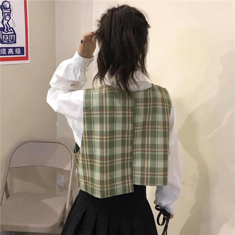 【韓国通販 dgo】レトロ ベスト トレンド ブラック グリーン チェック柄 2020年 夏 レディース センス溢れるファッションitem(A1761)