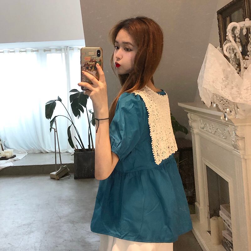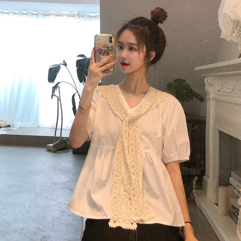 【韓国通販 dgo】レトロ デザイン ショール付き シャツ 夏 2020 ガーリー スタイル 半袖 女性 センス溢れるファッションitem(A1759)
