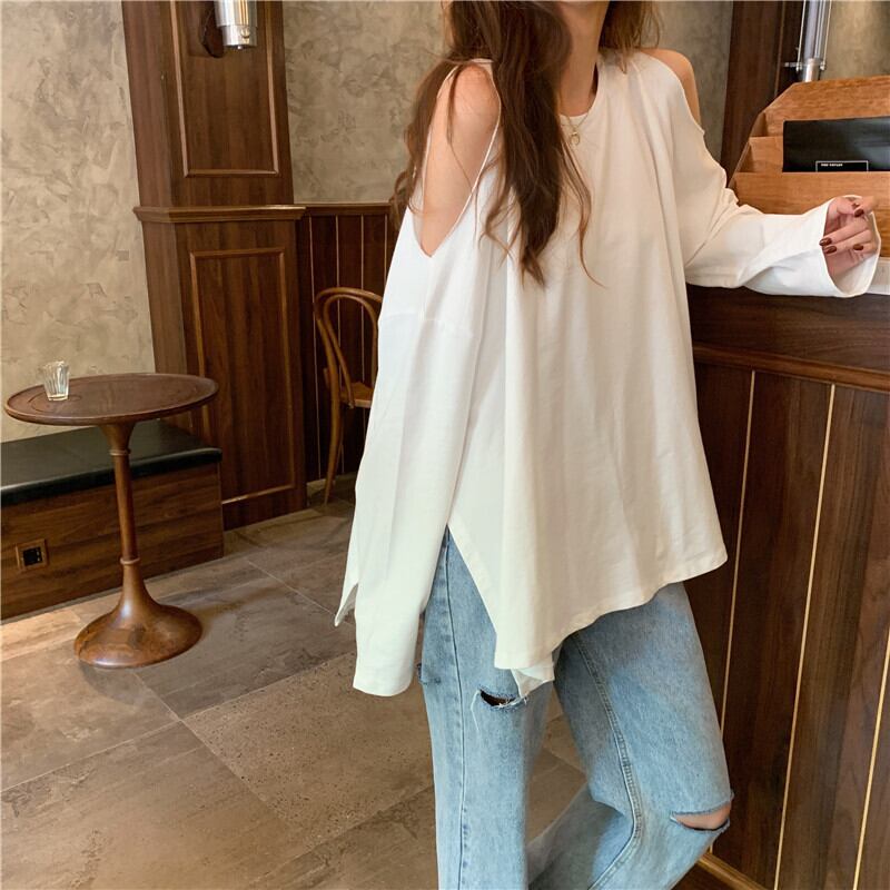 【韓国通販 dgo】プルオーバー オフショルダー ブラウス 夏 秋 2020 長袖 セーター 女性 とことん着回す!ブラウス(A1755)