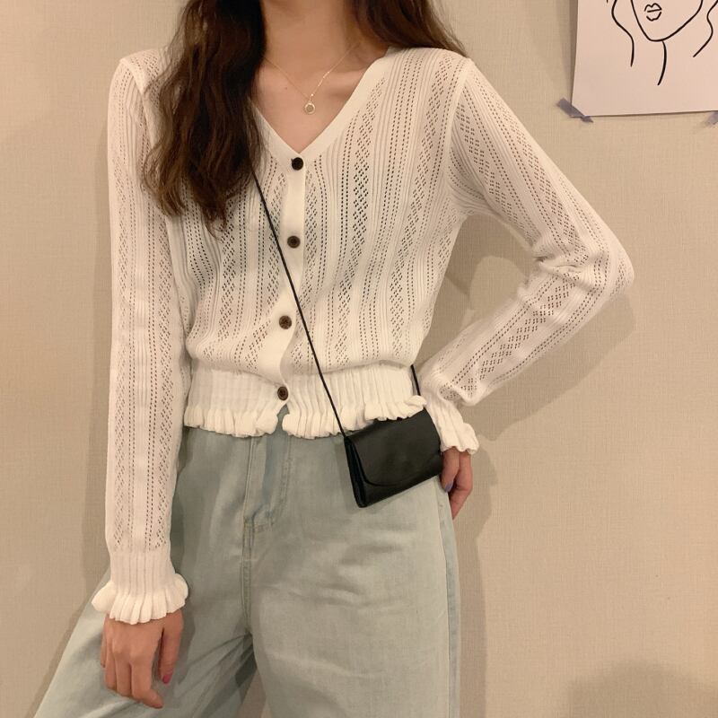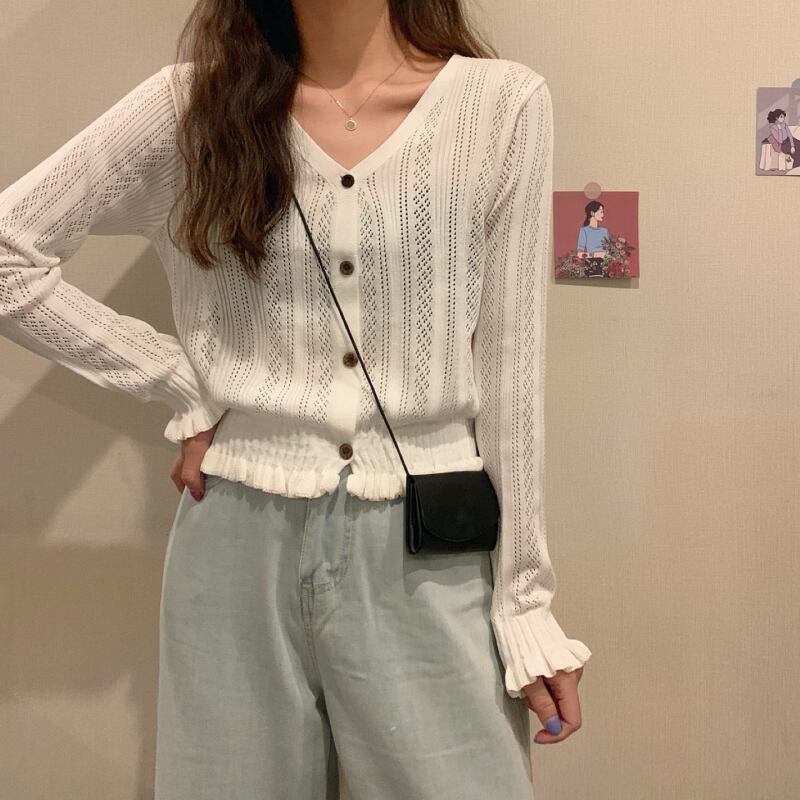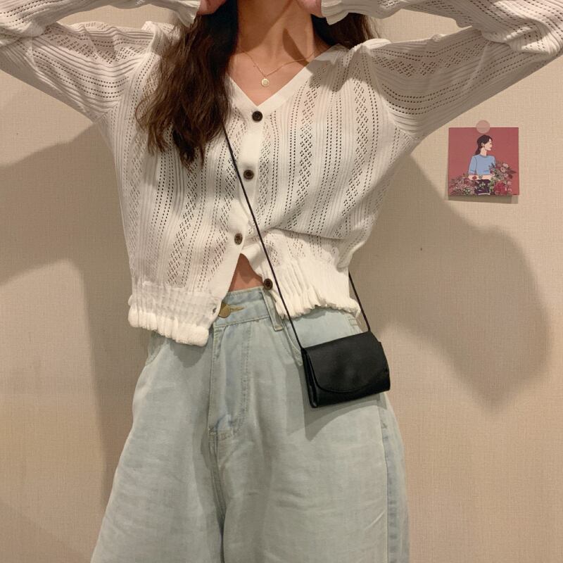 【韓国通販 dgo】シングルブレスト 長袖 セーター 女性 トレンド カーディガン トップ 夏 2020(A1751)
