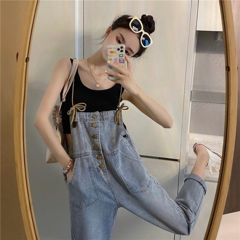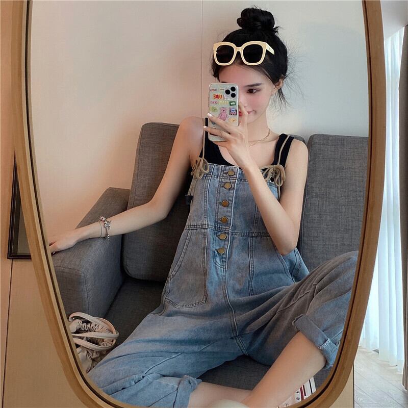 【韓国通販 dgo】ハイウエスト スリム オーバーオール ジーンズ 女性 2020年 夏を楽しむ、ノースリーブ(A1745)