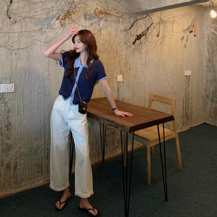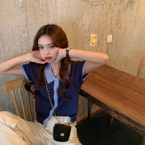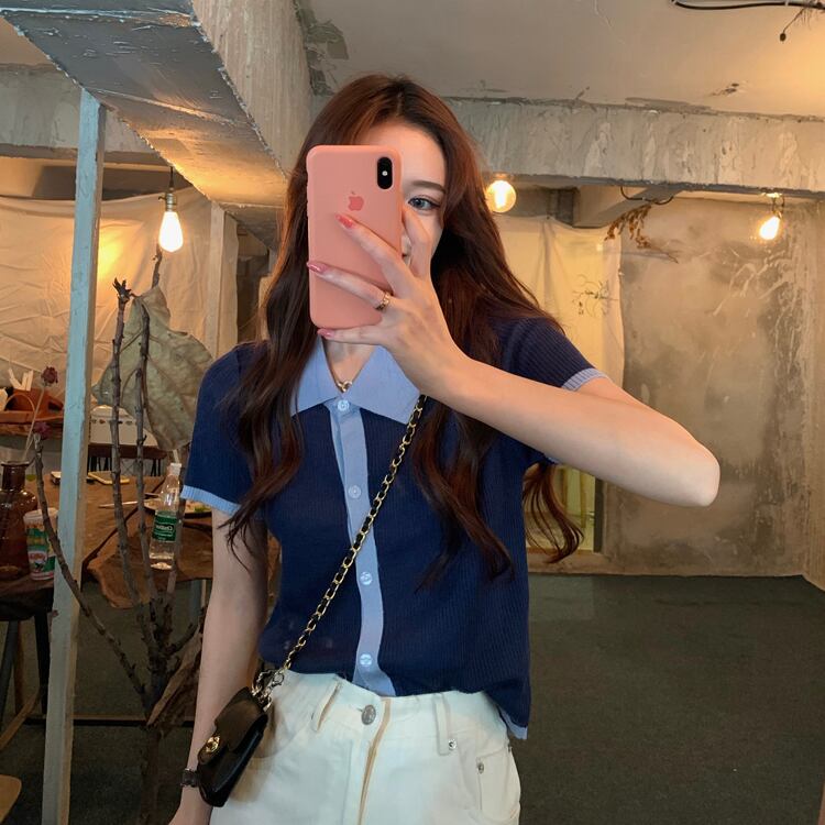 【韓国通販 dgo】コントラストカラ ーニット カーディガン 半袖 女性 2020年 夏 一着あると便利なシャツ(A1733)
