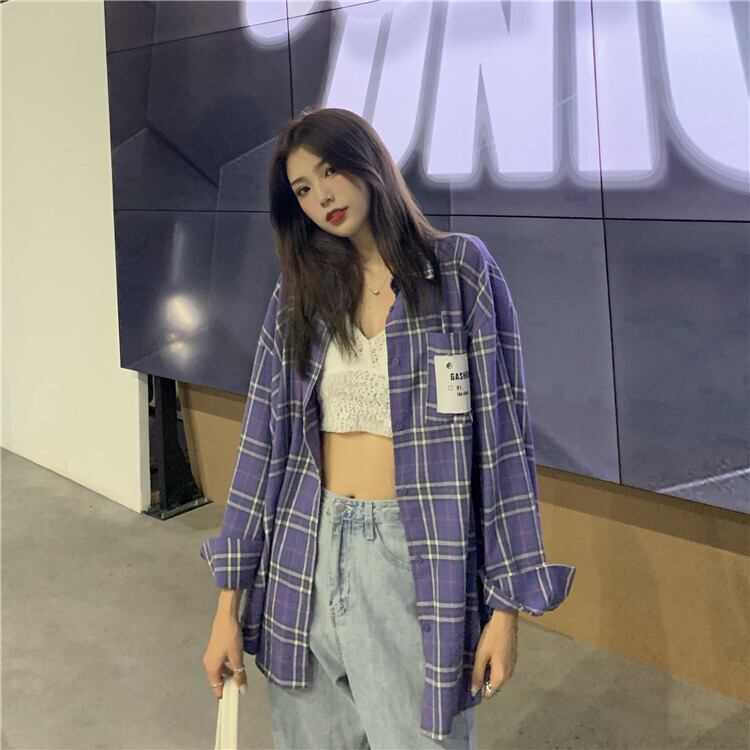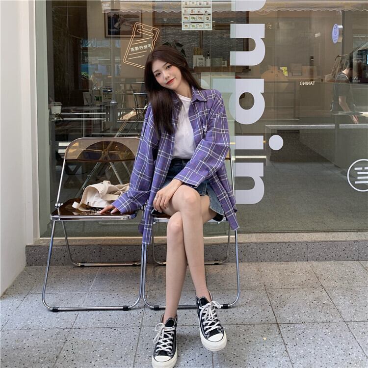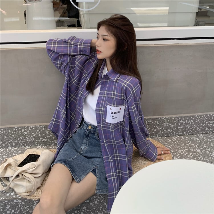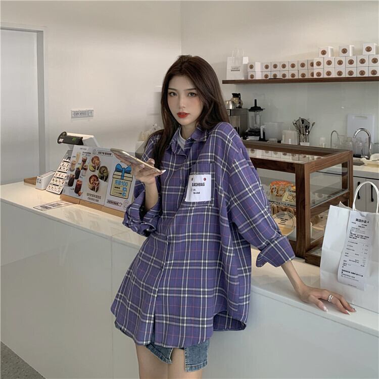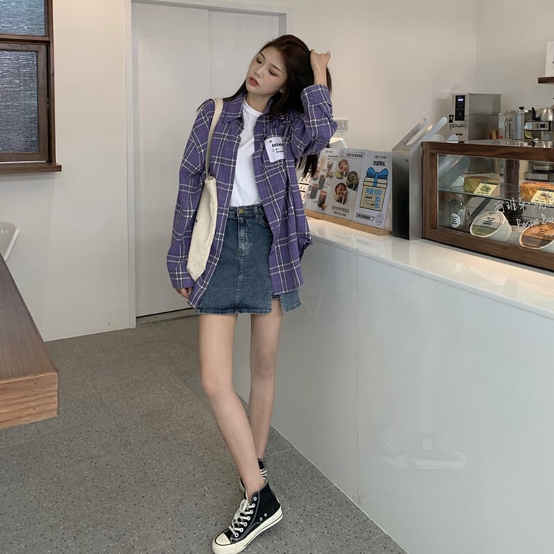 【韓国通販 dgo】polo neck checked shirt purple color(A0399)
