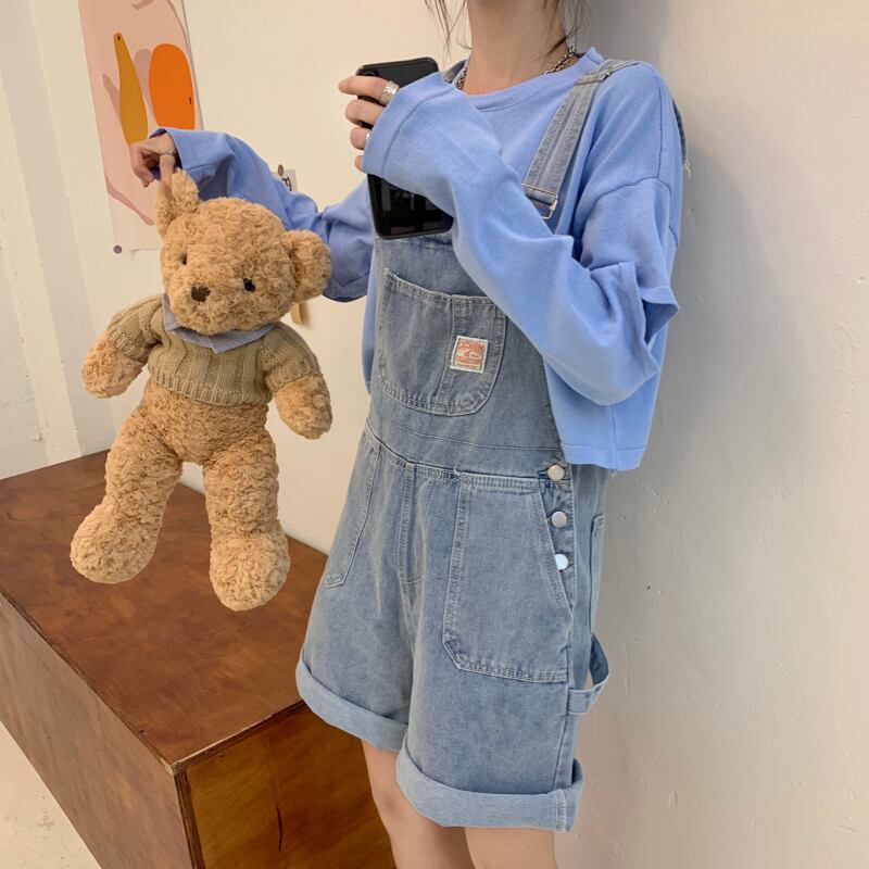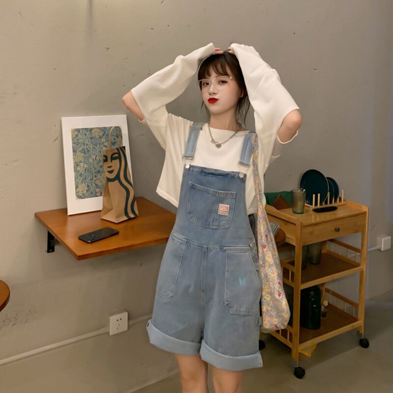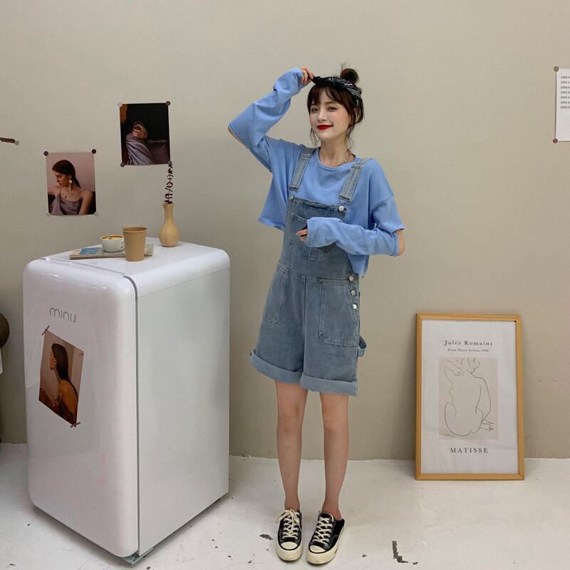 【韓国通販 dgo】デニムオーバーオール レディース 秋 2020(トップス ブルー ホワイト)2ピース 落ち着きショートパンツコーデ(A1708)