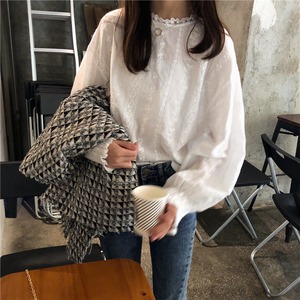 【韓国通販 dgo】秋 2020年 チェック柄 ベスト カジュアル(長袖 ランタンスリーブ シャツ)レディース センス感じるこだわりシャツ(A1704)