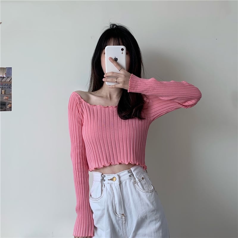 【韓国通販 dgo】2020年 秋 スクエアネック 長袖 セーター レディース ショートシャツ 特別な日のトップス(A1702)