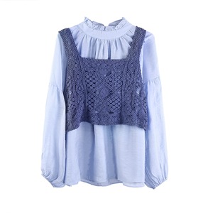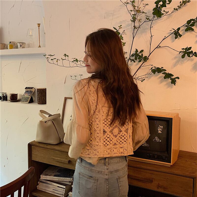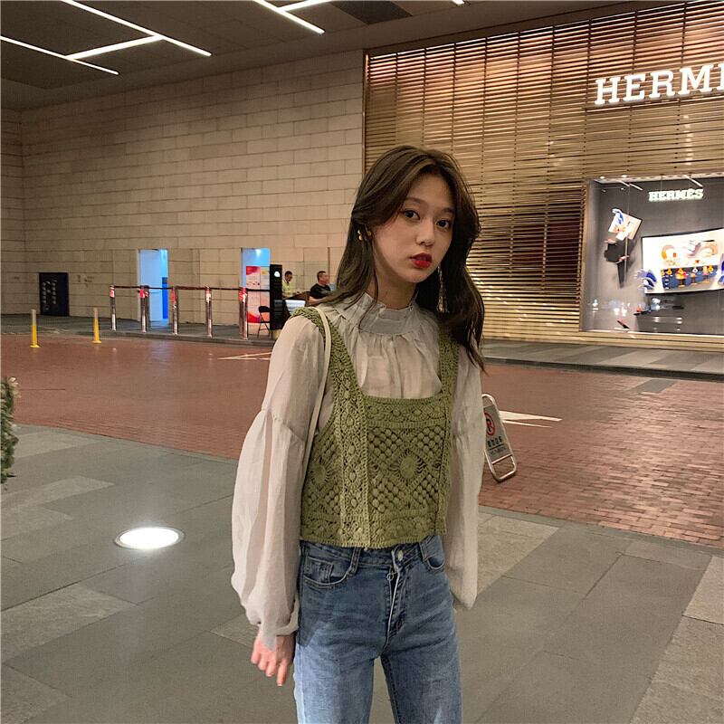 【韓国通販 dgo】ランタンスリーブ ブラウス 3color(スクエアネック ニットベスト アウター)2020年 初秋 レディース トレンド 季節を先取る、トップス(A1696)