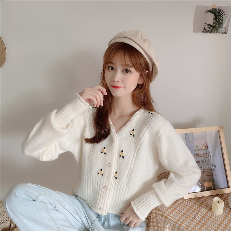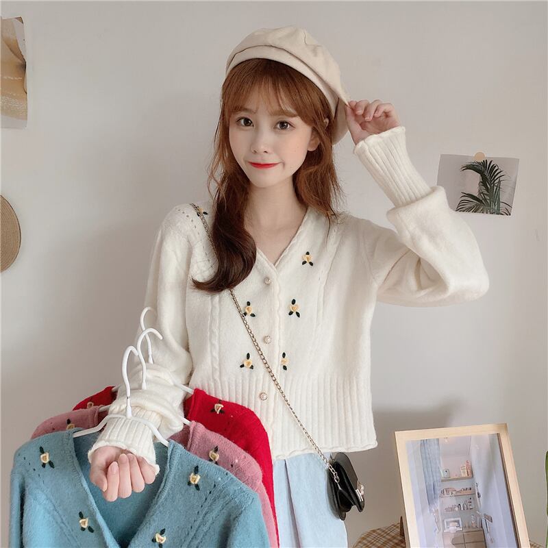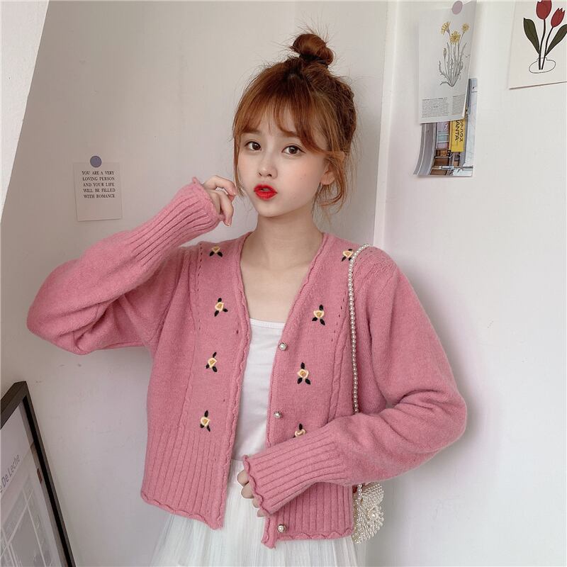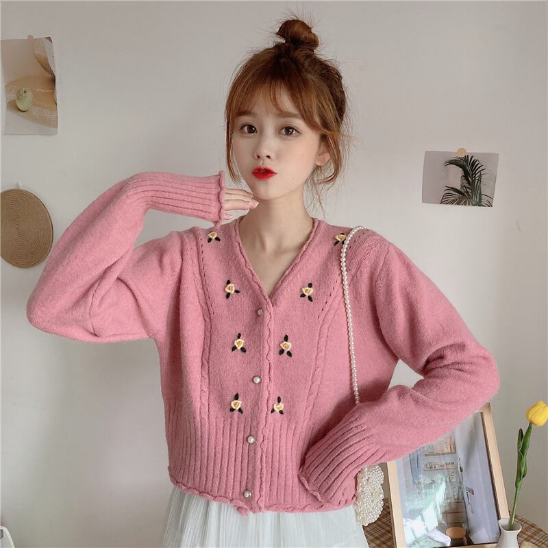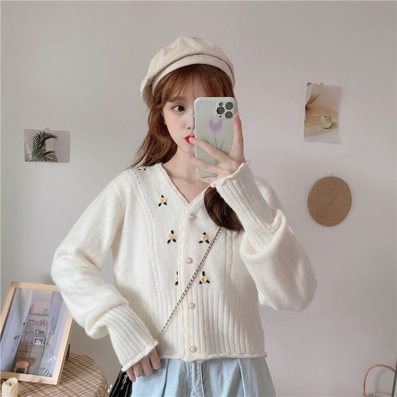【韓国通販 dgo】Vネック シングルブレスト カーディガン セーター 2020年 秋 レディース トレンド 個性輝くこだわりニット(A1662)