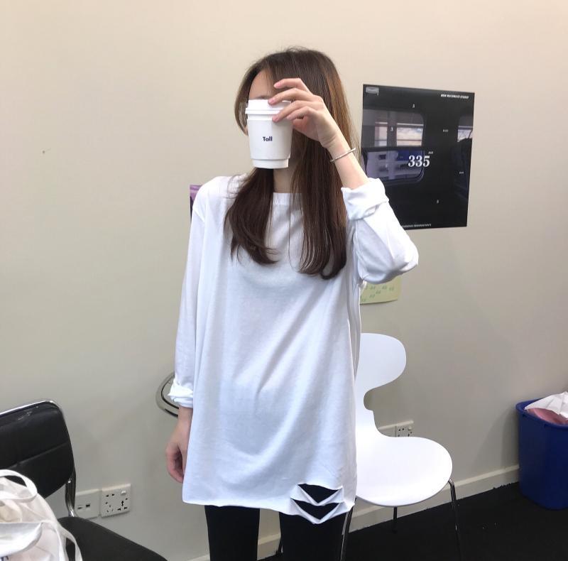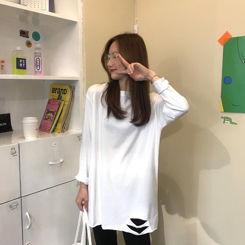 【韓国通販 dgo】ミドル丈 ラウンドネック 長袖 シャツ レディース 2020年 秋 主役級の着こなしになるTシャツ(A1660)