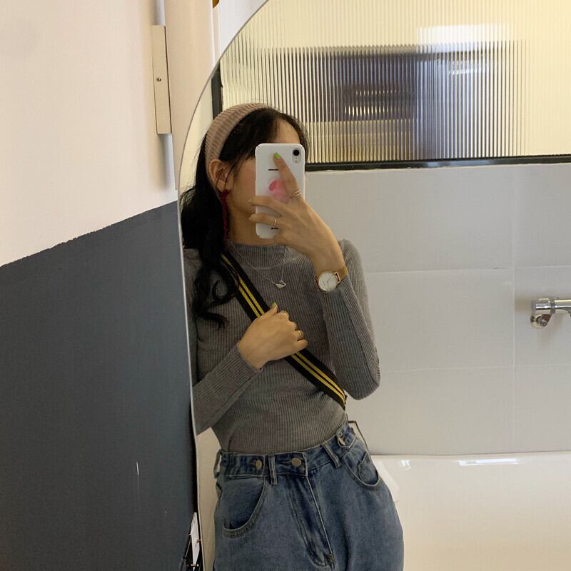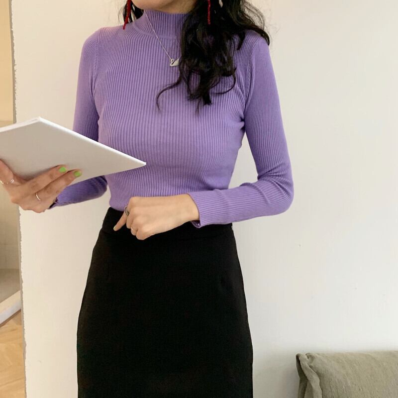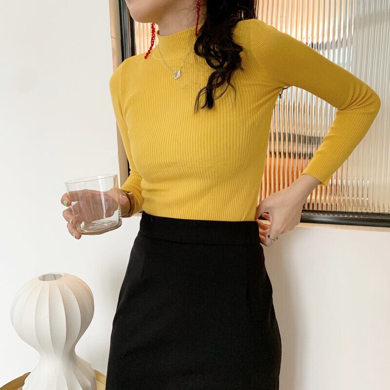 【韓国通販 dgo】ハーフハイネック プルオーバー ボトムス シャツ トップス 2020年 秋 新作 長袖 セーター レディース センスが光るお気に入りトップス(A1657)