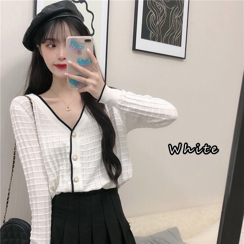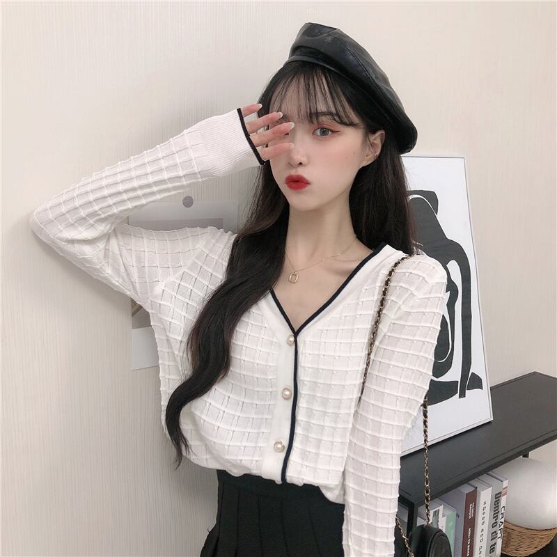 【韓国通販 dgo】2020年 秋 Vネック ブラウス 長袖 カーディガン 日焼け止め レディース トップスで着回し!(A1647)