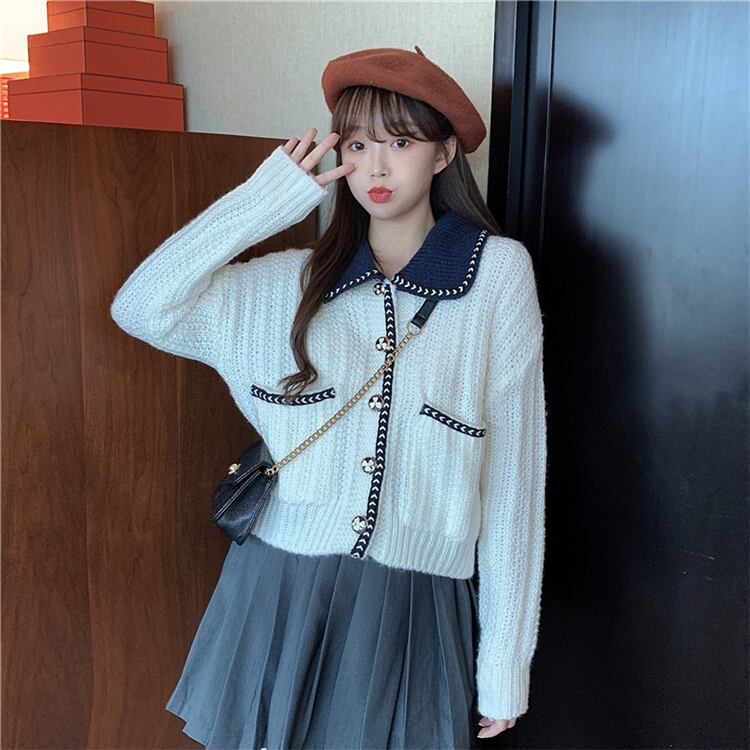 【韓国通販 dgo】cute sweater cardigan navy white two colors(A1605)